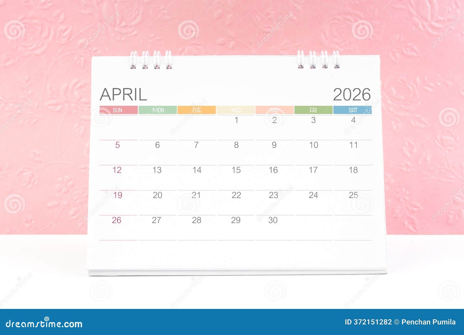 April 2026 Desk Calendar With Pink Color Flower Pattern Embossed Stock Photo Image Of Sweet Event 372151282