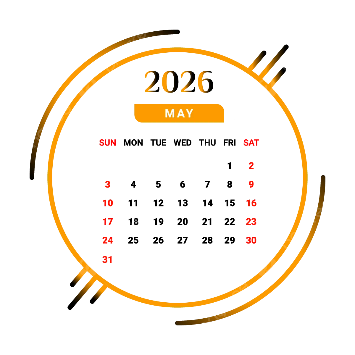 2026 May Month Calendar With Black And Golden Vector Monthly