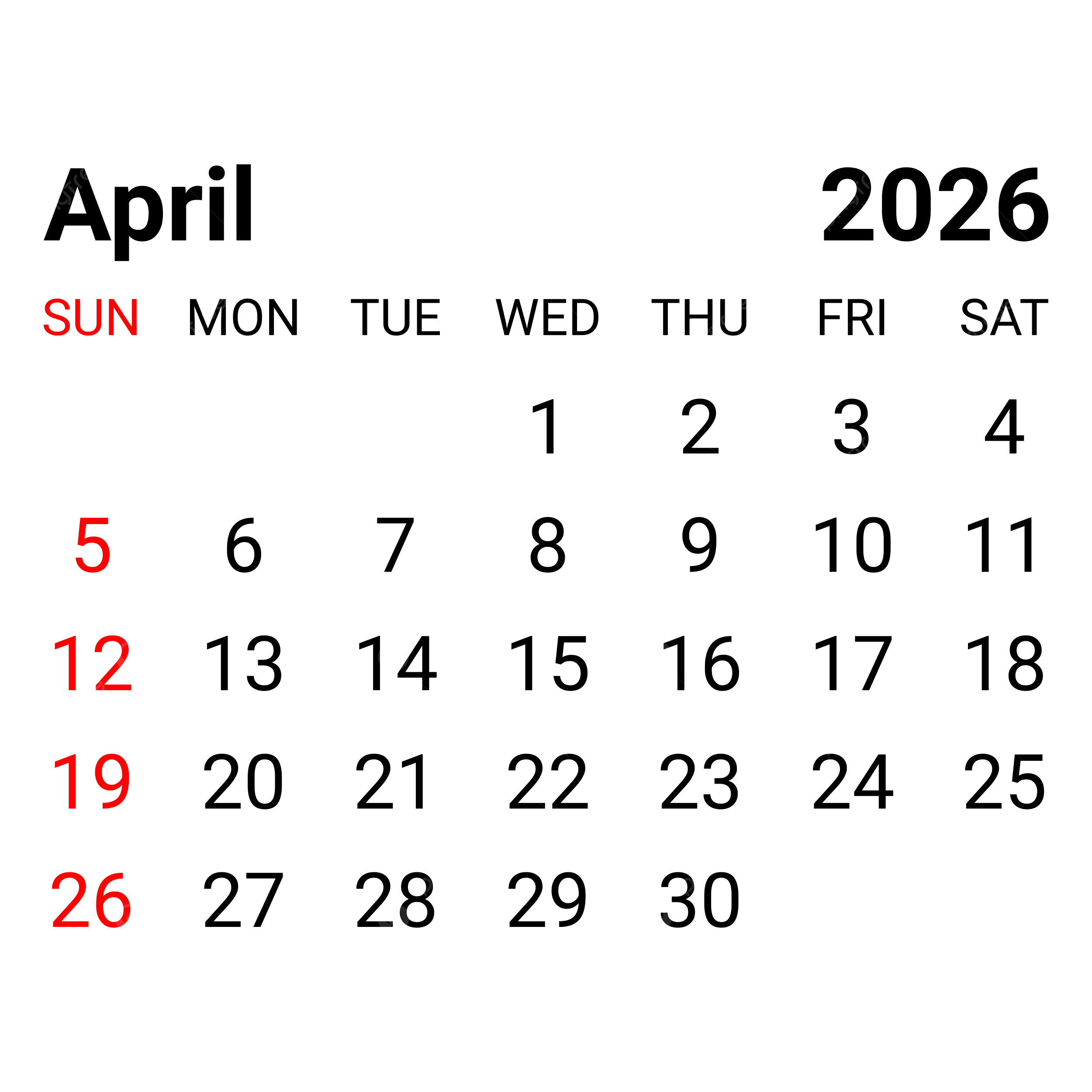 Don’t let another month slip by without a plan. Get your hands on our April 2026 calendar with a transparent background and start organizing your life today. With its sleek design and practical layout, this calendar is sure to become your go-to tool for staying on top of your busy schedule. Download now and make April 2026 your most productive month yet!
