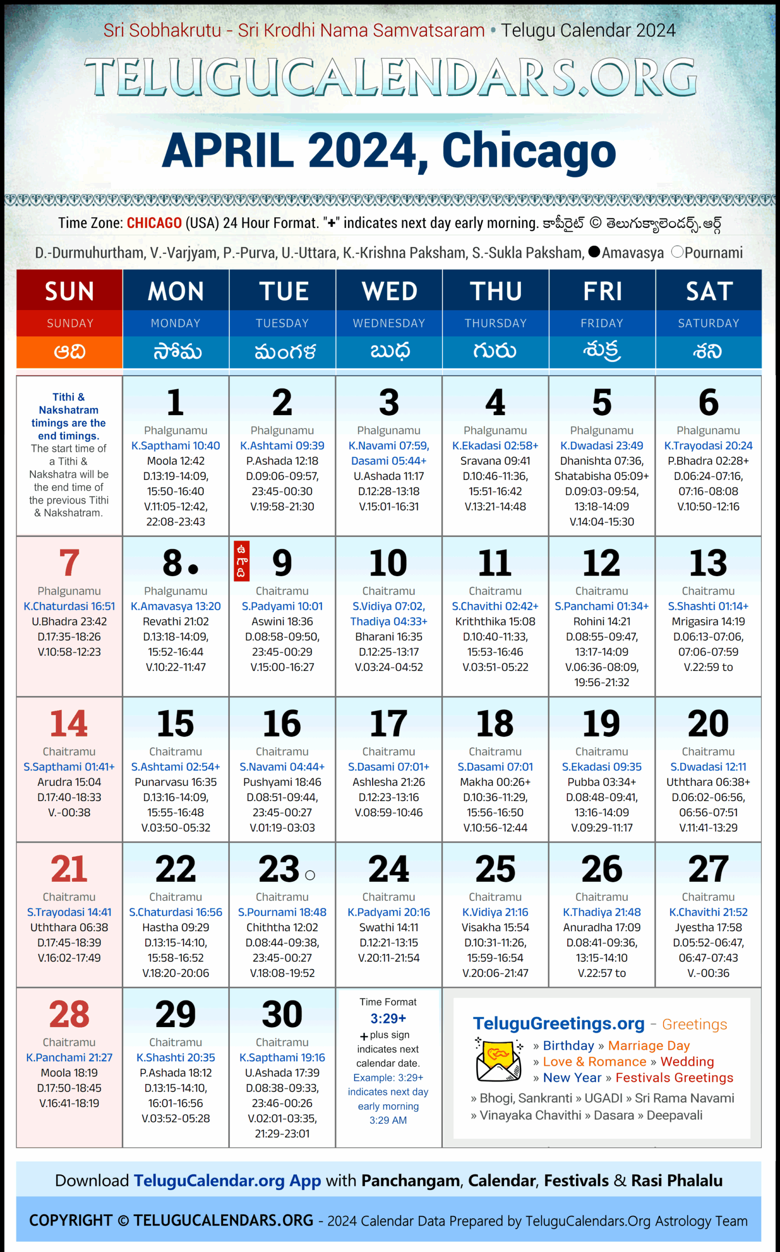 Telugu Calendar 2024 April Chicago Telugu Pedia