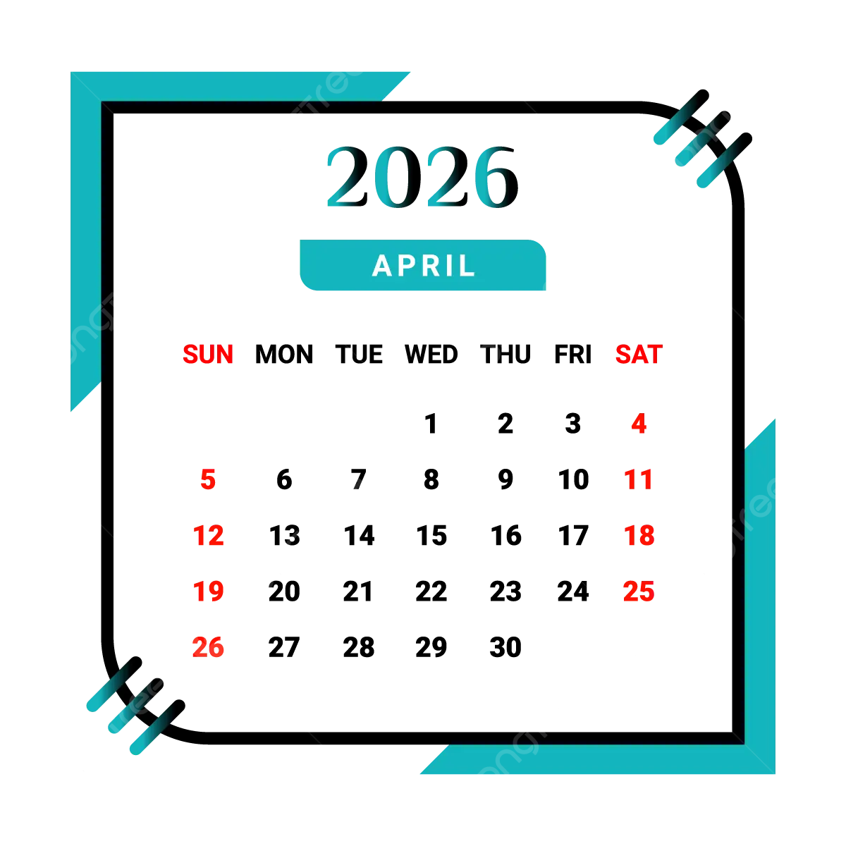 2026 April Month Calendar With Black And Red Vector Monthly