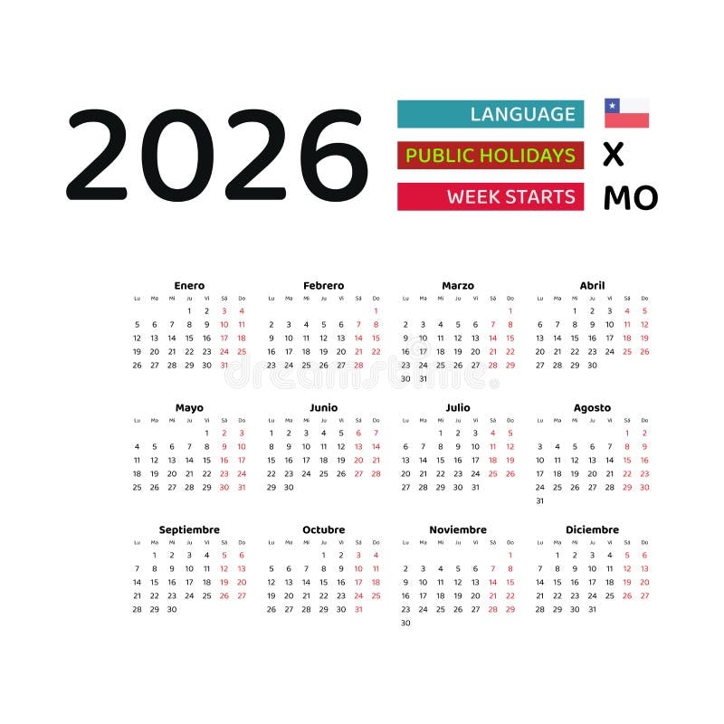 Chile Calendar 2026 Week Starts From Monday Vector Graphic Design Stock Vector Illustration Of Desk April 263664731