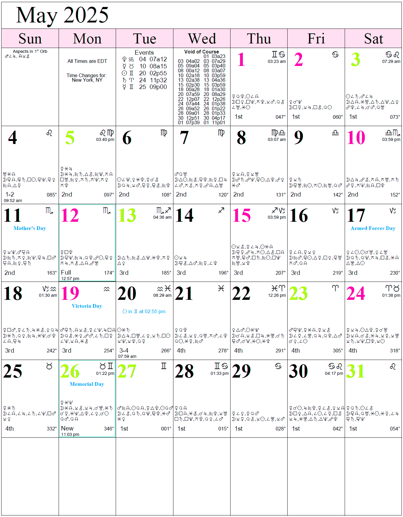 Astrological Calendar May 2026