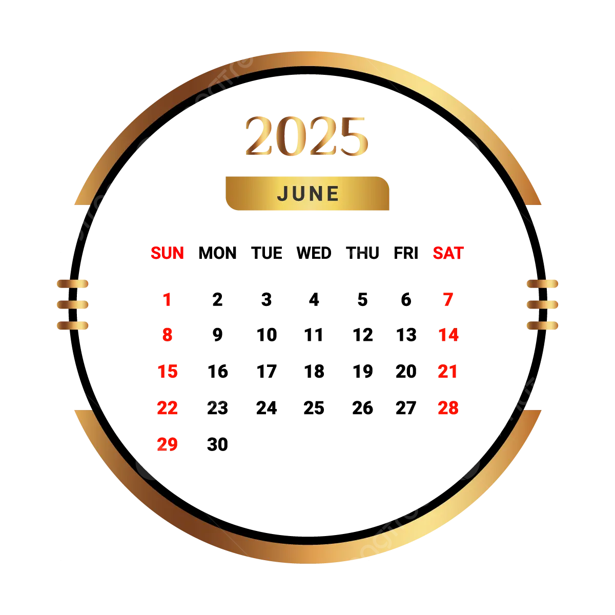 2025 June Month Calendar With Golden And Black Vector Monthly Calendar Calendar June 2025 PNG And Vector With Transparent Background For Free Download