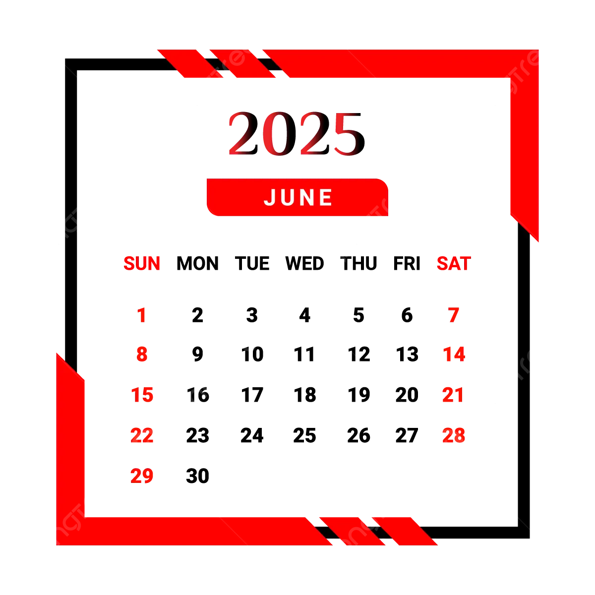 2025 June Month Calendar With Black And Skyblue Vector Monthly Calendar Calendar June 2025 PNG And Vector With Transparent Background For Free Download