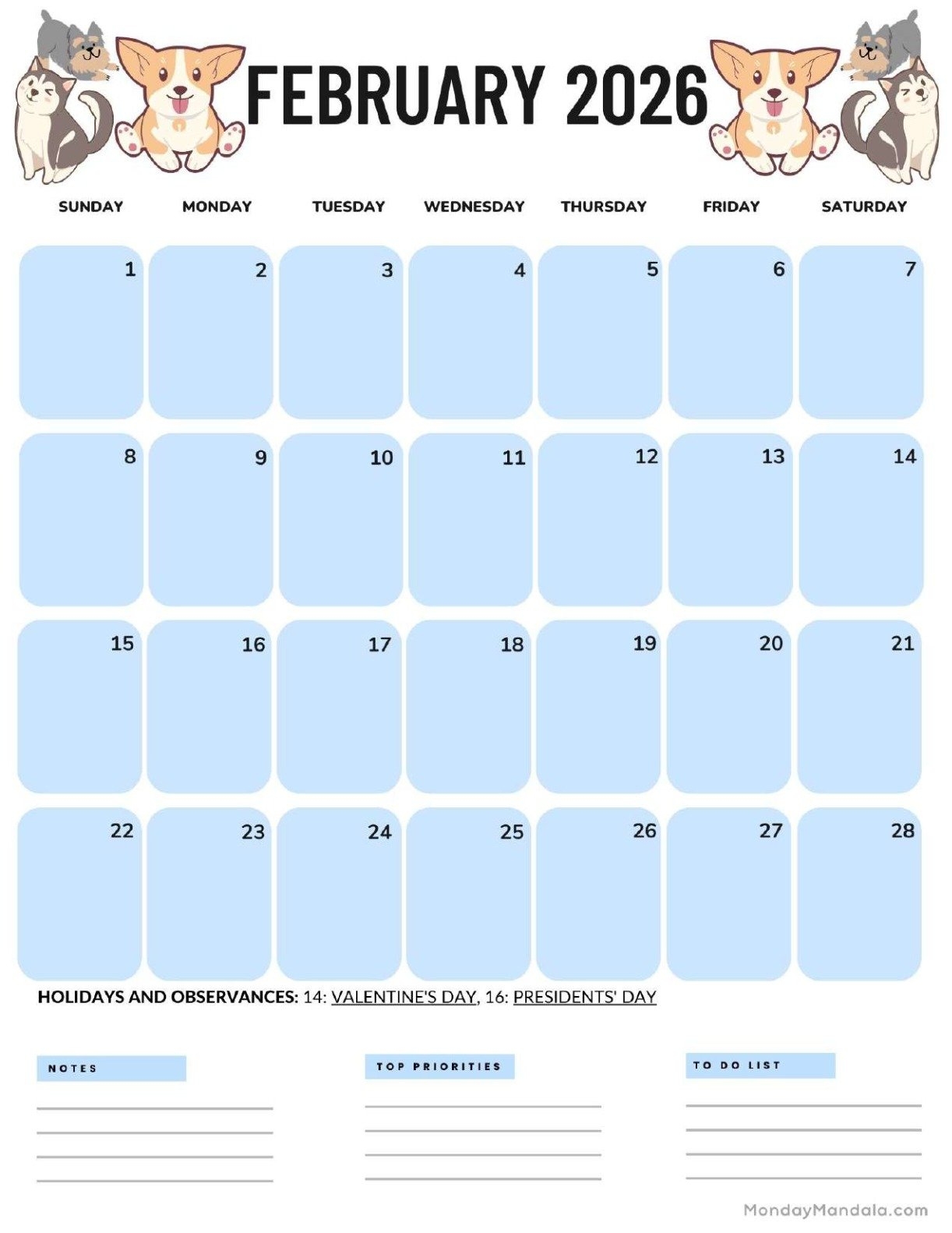 Printable February 2026 Calendar