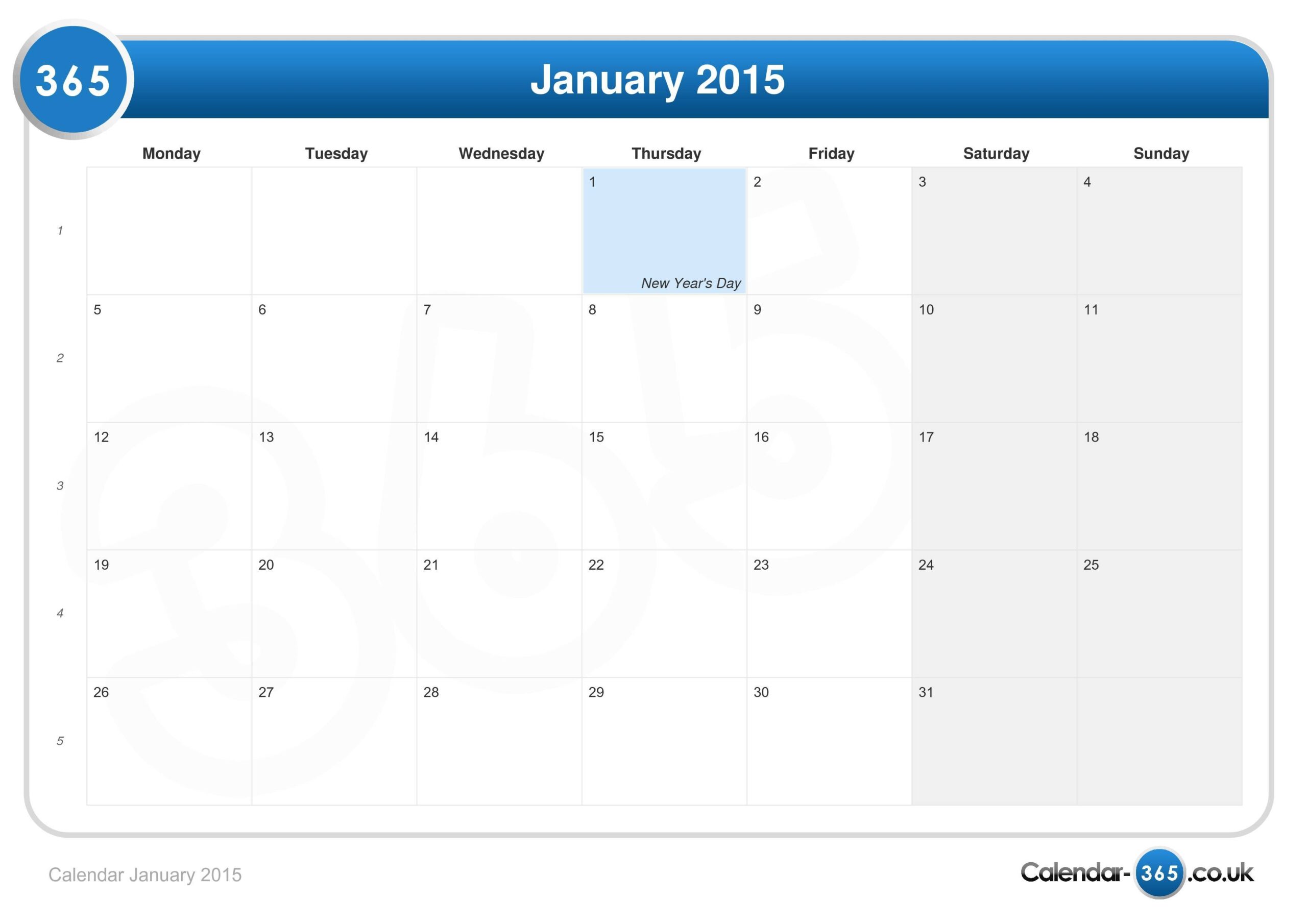 Calendar January 2015