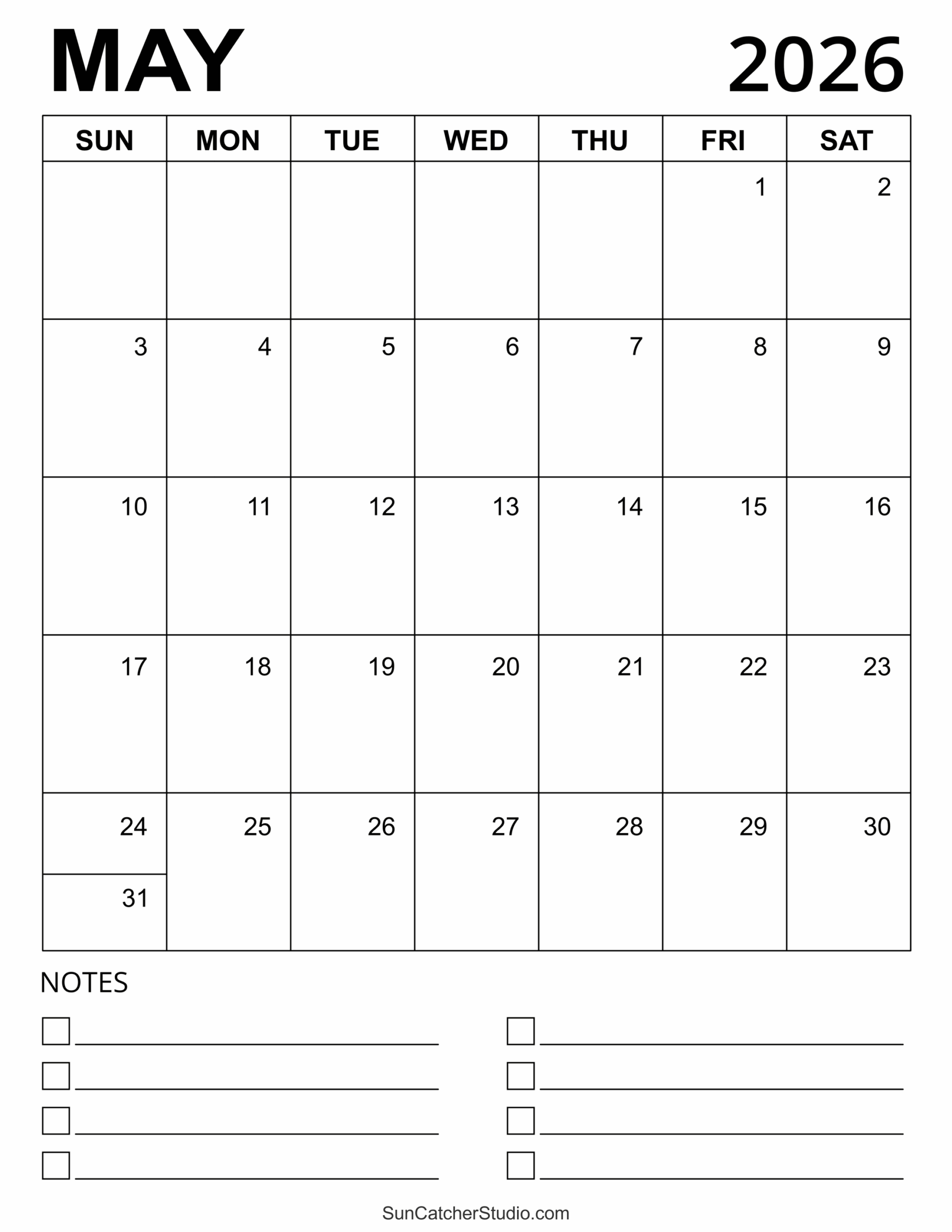 May 2026 Calendar Printable