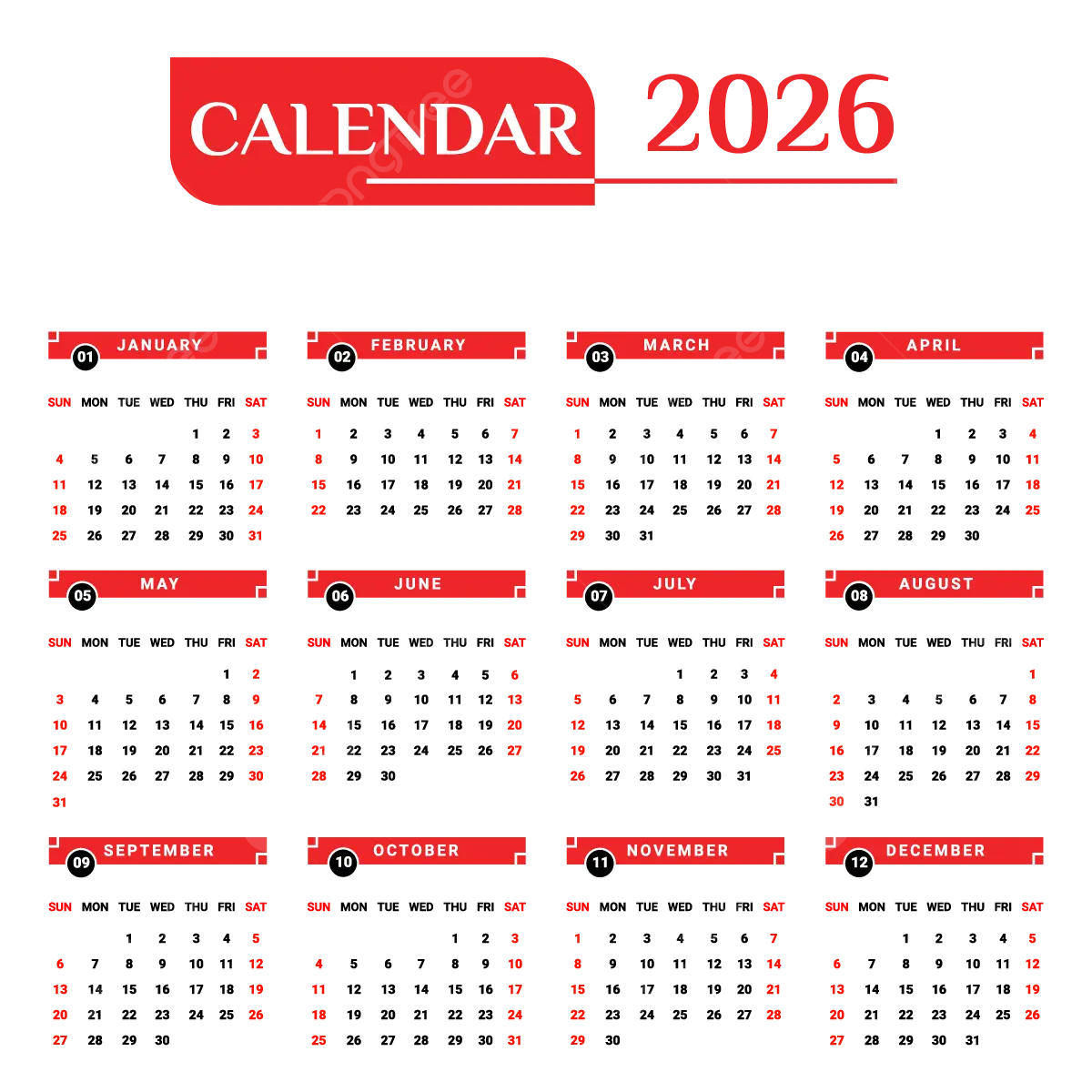 2026 Red Calendar With Unique Geometric Style Vector Calendar 2026 Calendar Yearly Calendar PNG And Vector With Transparent Background For Free Download