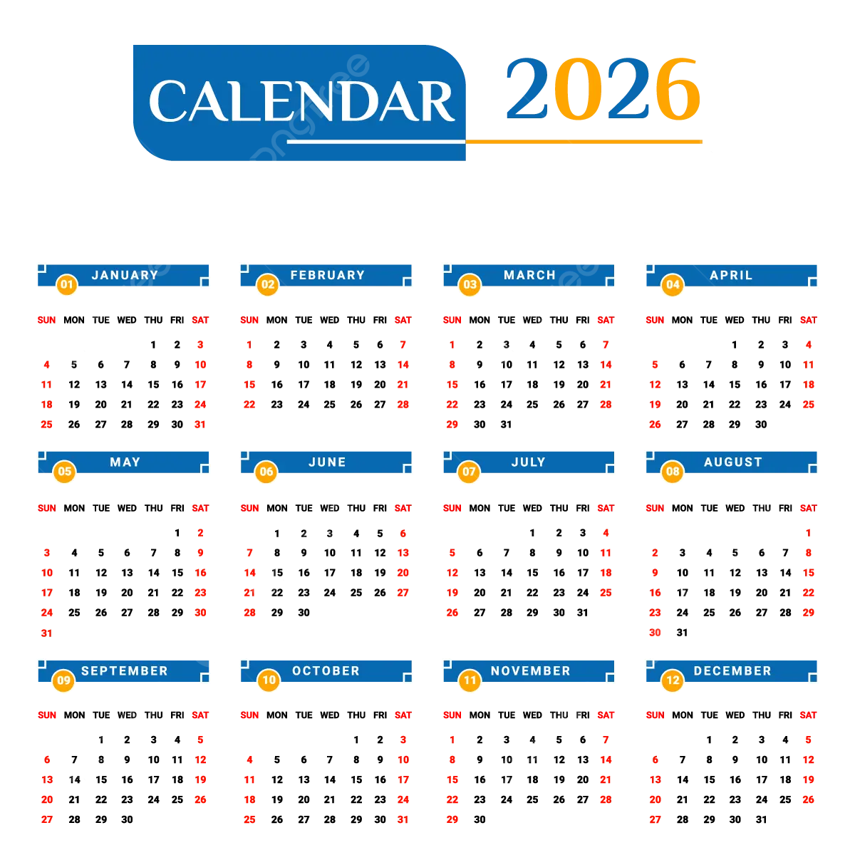 2026 Yellow And Blue Calendar With Unique Geometric Style Vector Calendar 2026 Calendar Yearly Calendar PNG And Vector With Transparent Background For Free Download