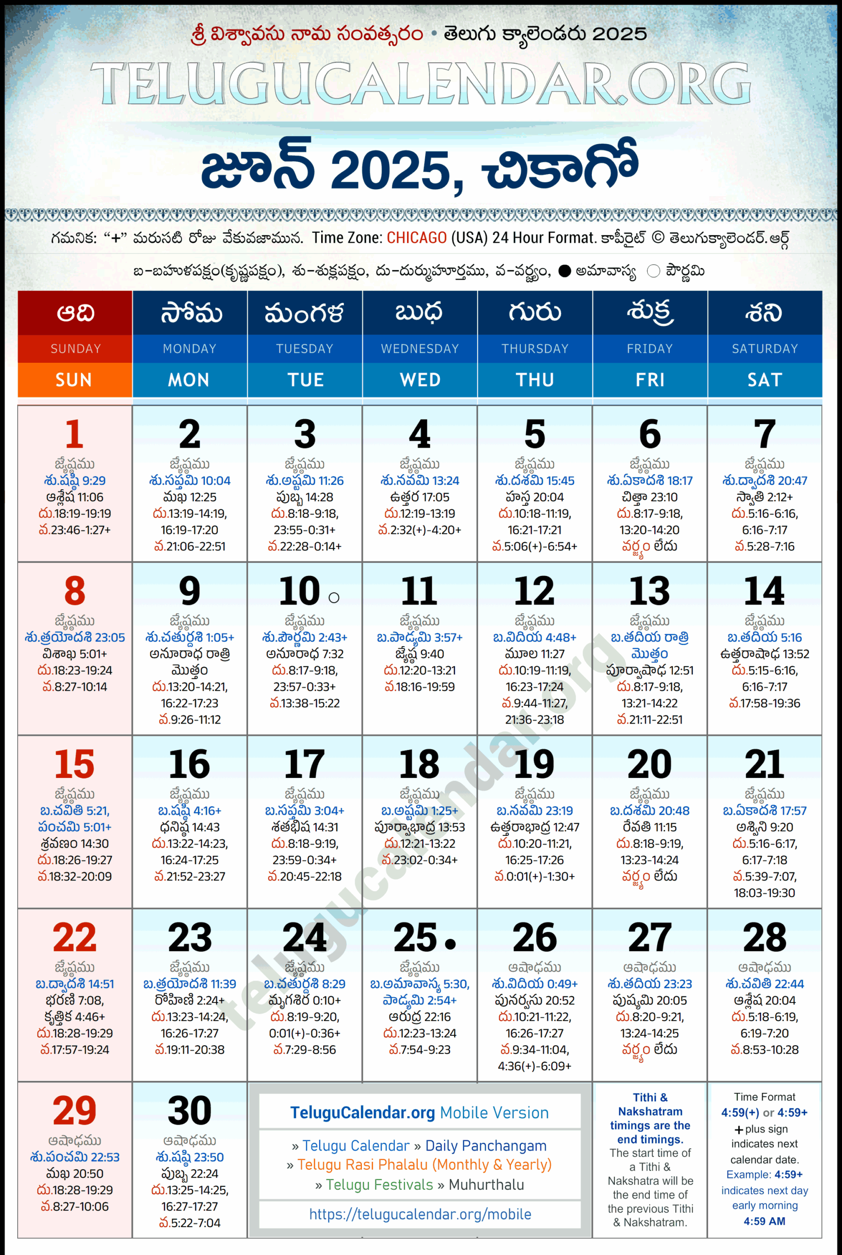 Chicago Telugu Calendar 2025 June PDF Festivals