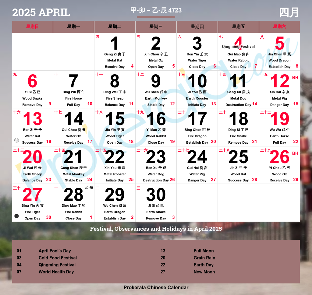 Chinese Calendar April 2025 April 2025