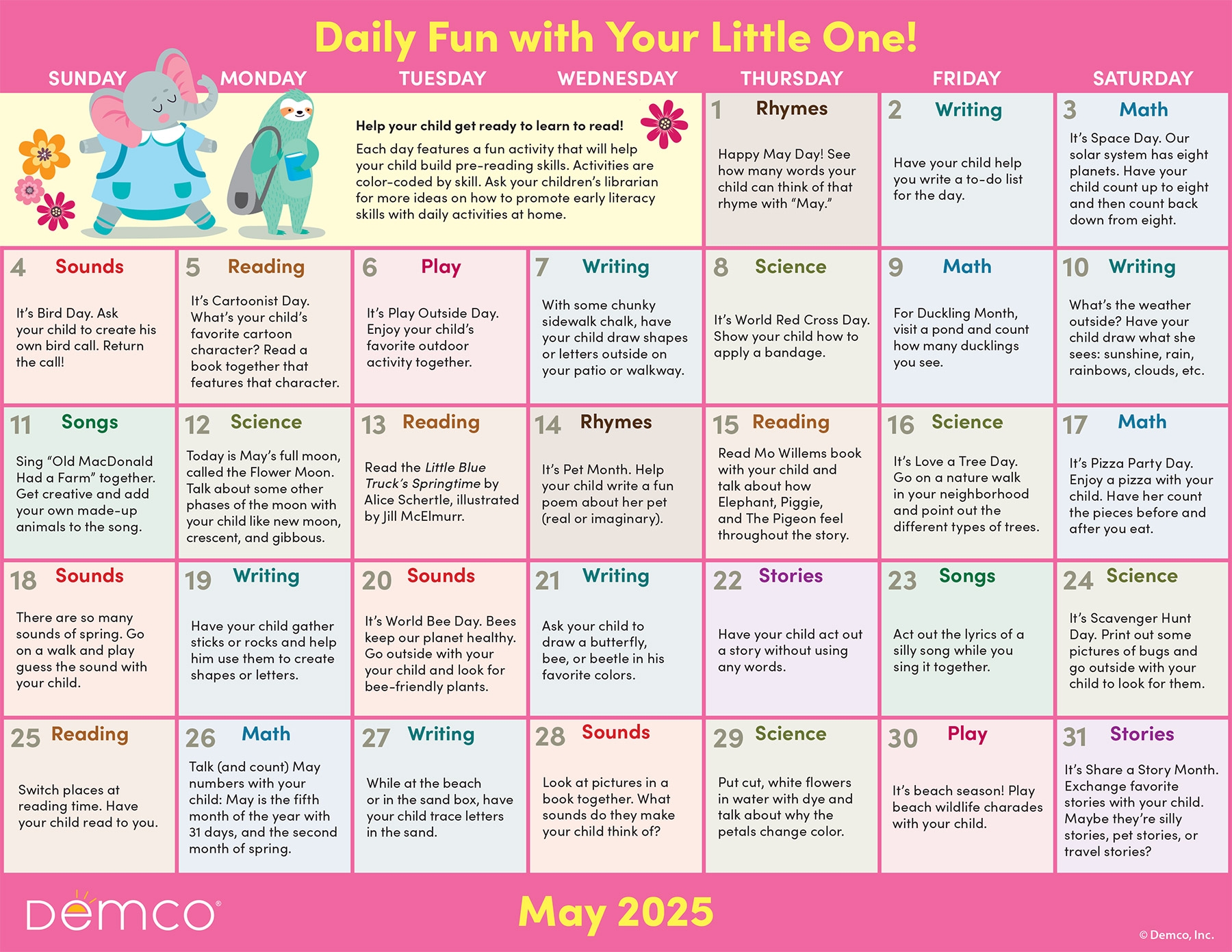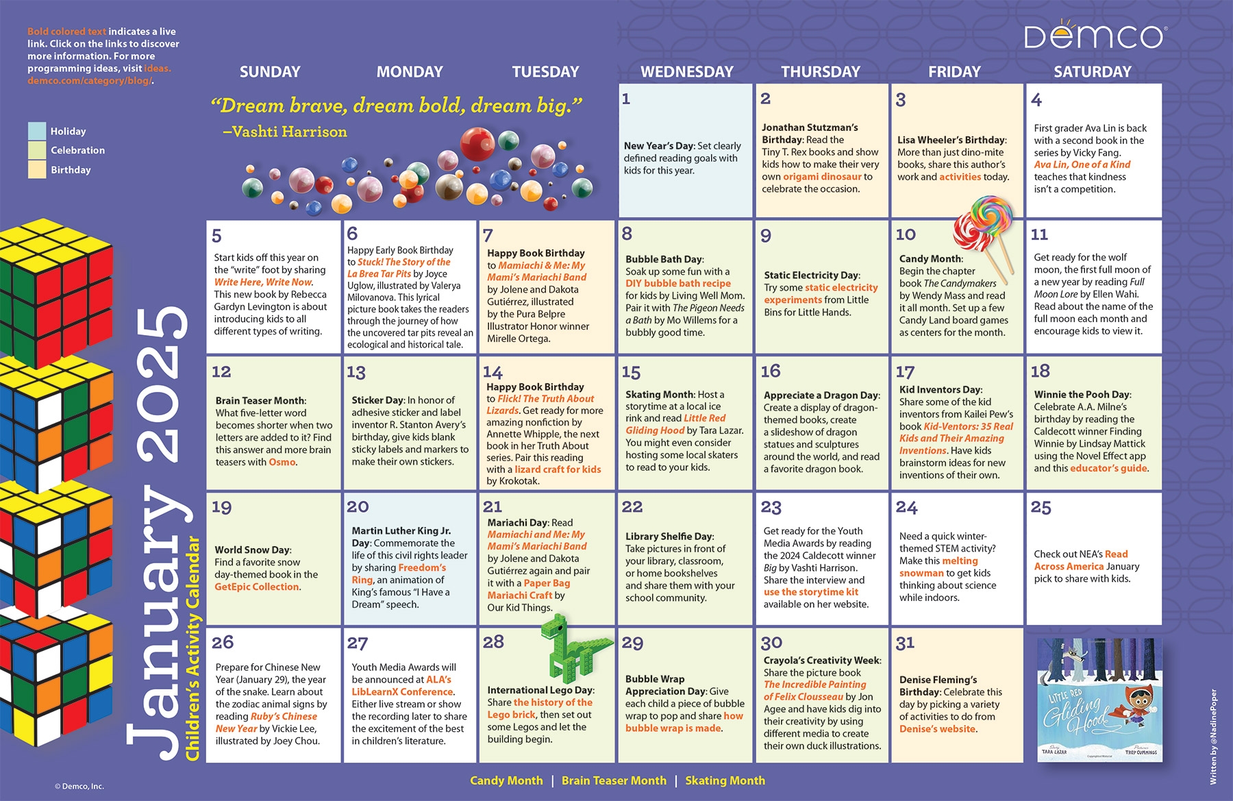 This calendar features large, easy-to-read dates, ample space for notes, and vibrant colors to brighten up your month. Whether you prefer a digital version or a physical copy to hang on your wall, Demco has you covered. Never forget a birthday or meeting again!