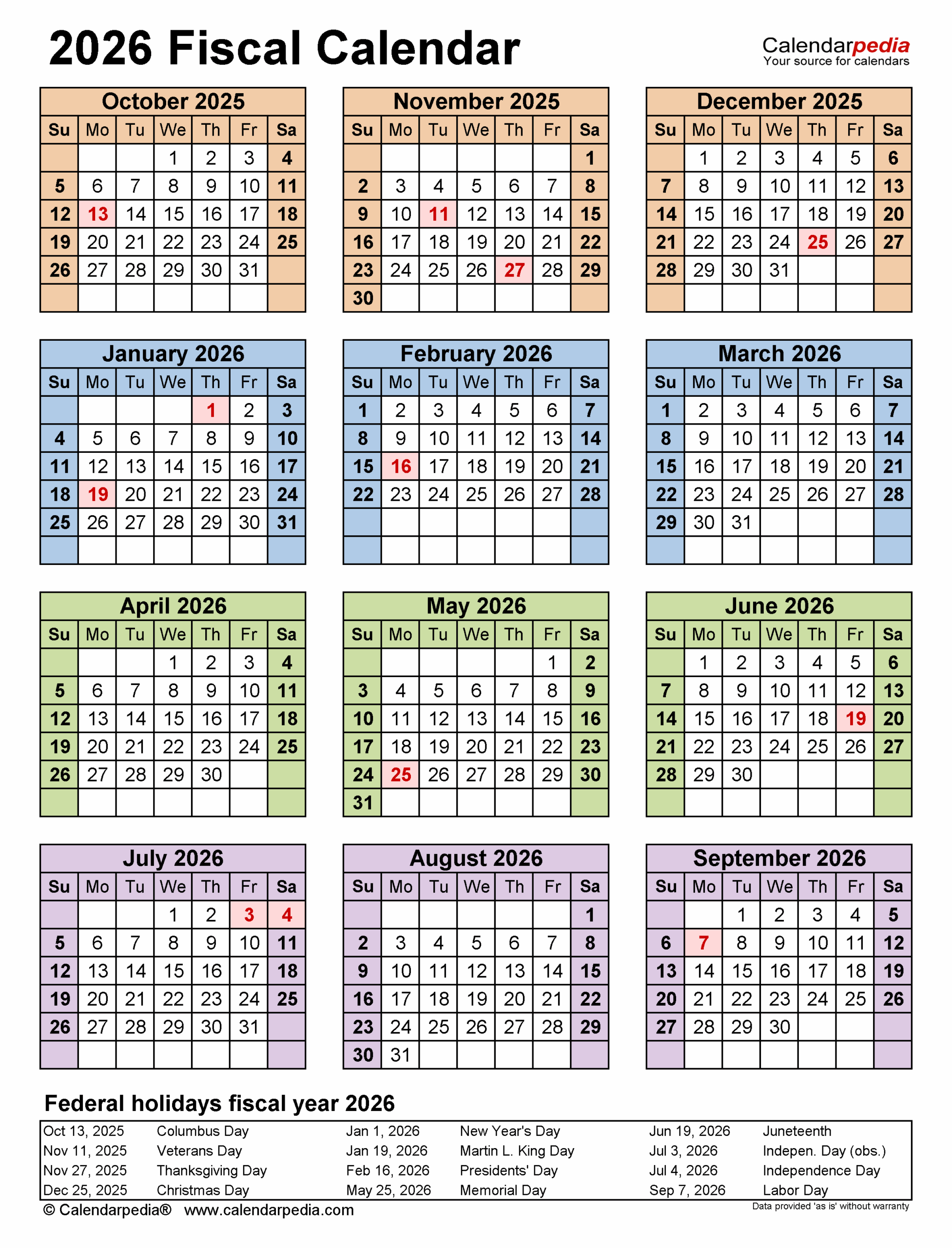 Fiscal Calendars 2026 Free Printable PDF Templates