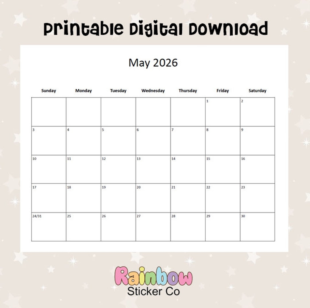 Printable May 2026 Monthly Calendars Minimalist Design Editable May Monthly Printable Calendar Digital File Etsy