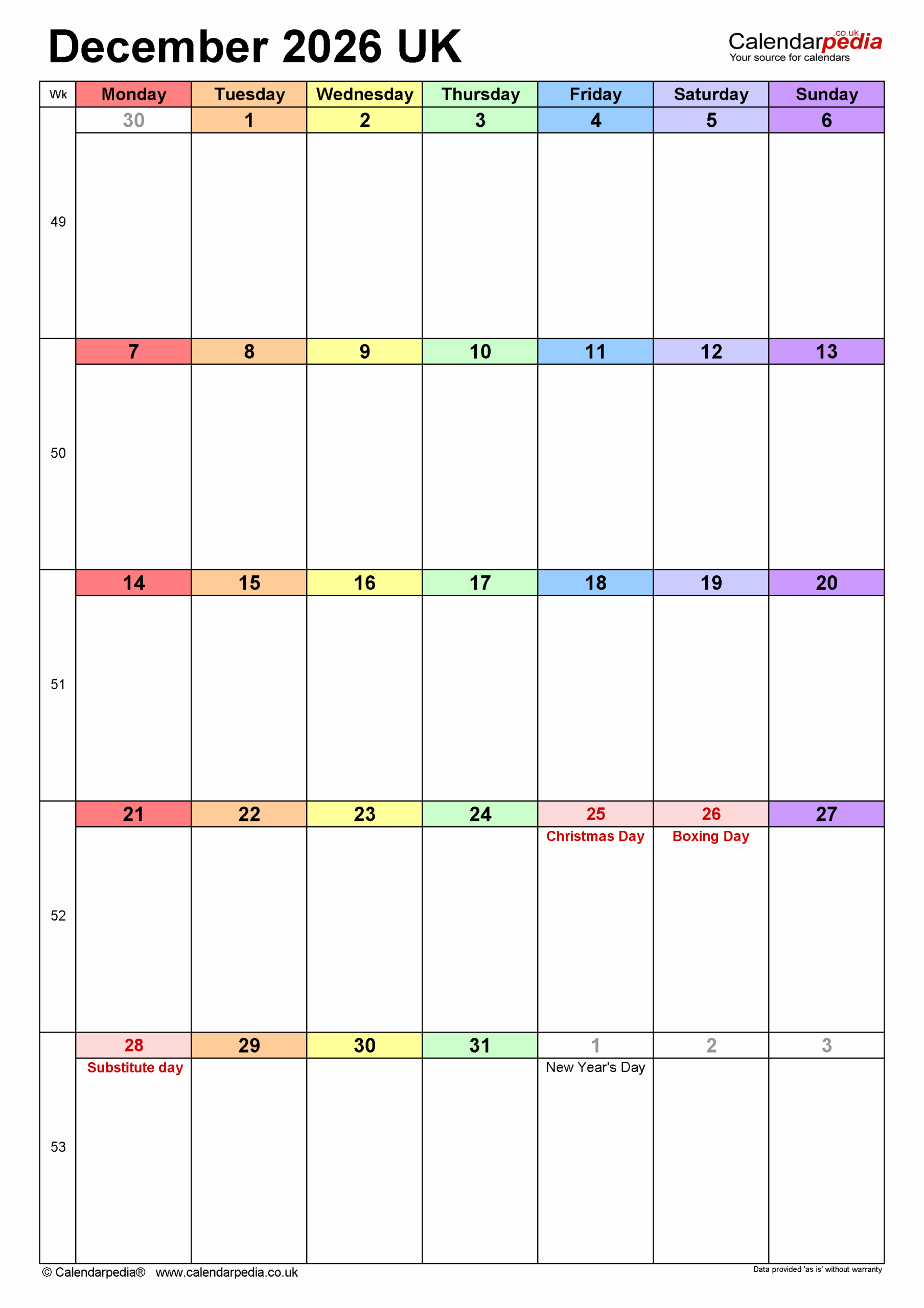 Calendar December 2026 UK With PDF Excel And Word Templates
