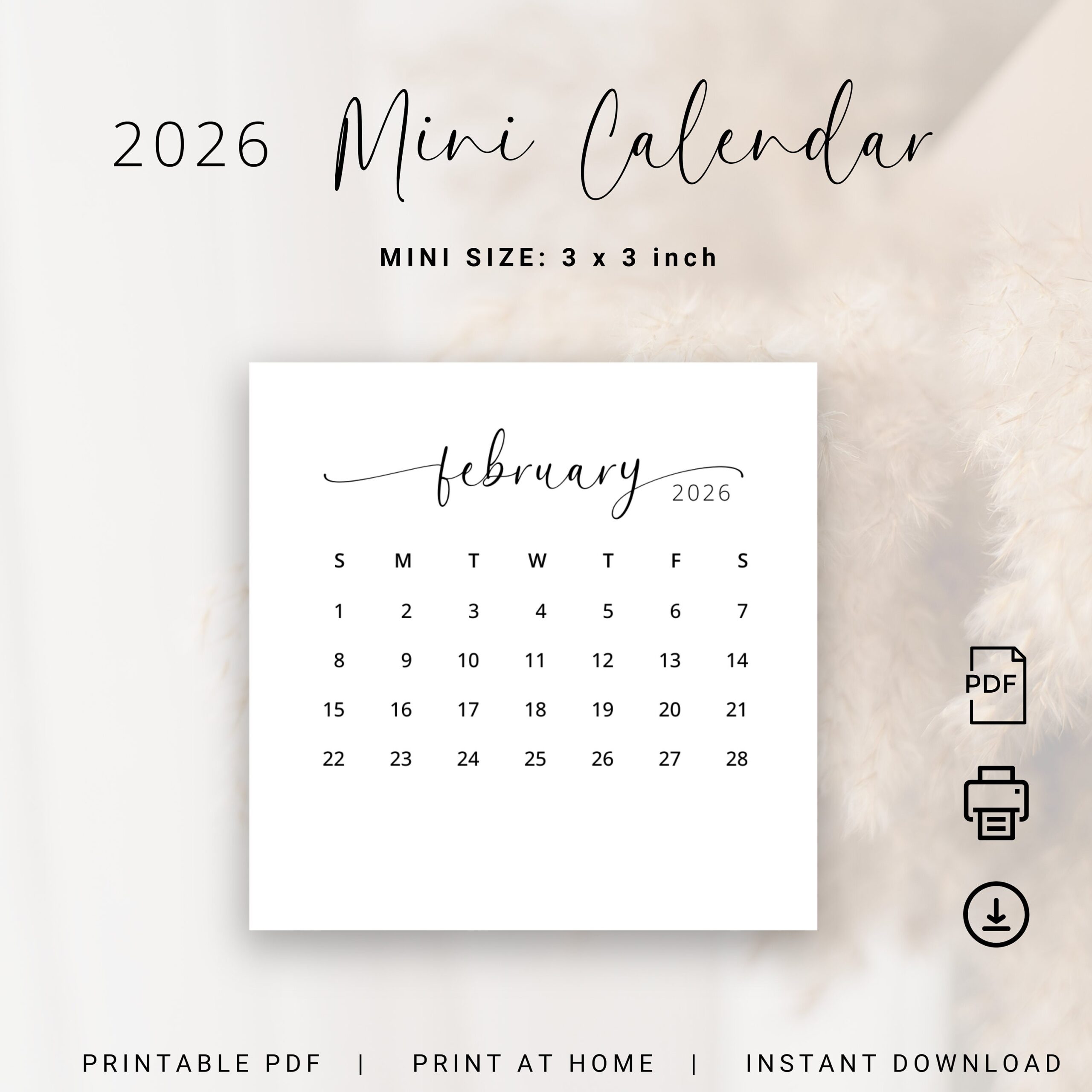 2026 Mini Calendar 3×3 2026 Small Calendar 2026 Square Calendar Printable Mini Calendar 2026 Elegant Calendar Card 3×3 Inch Compact Calendar Etsy