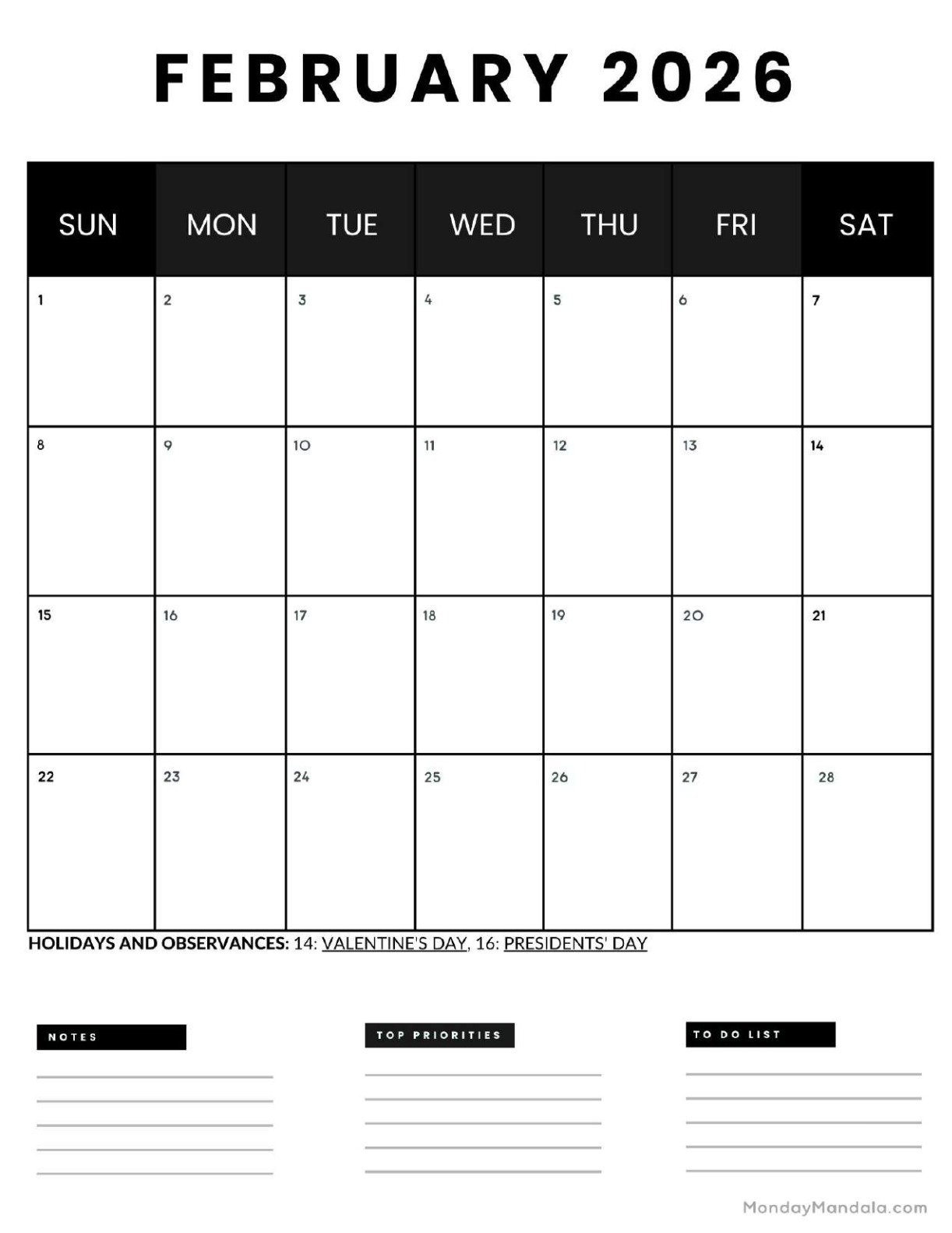 Whether you prefer a minimalist design or something more colorful and decorative, there are plenty of options available online for free. Simply download, print, and start using your February 2026 calendar right away. It’s a simple yet effective way to stay on track throughout the month.