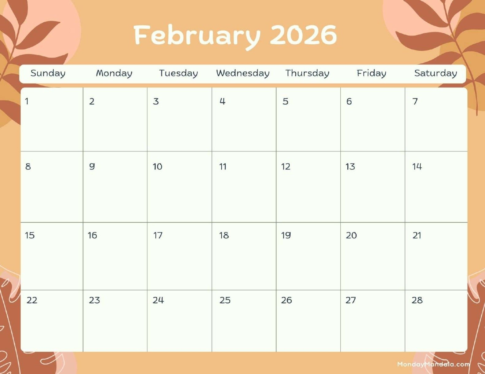 February Calendar 2026 Grid Lines For Holidays And Notes