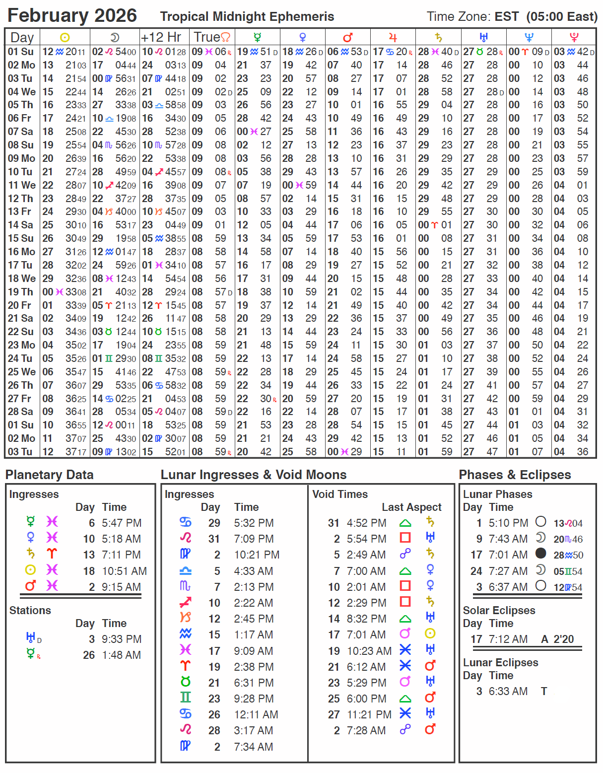 February Astrology Calendar 2026