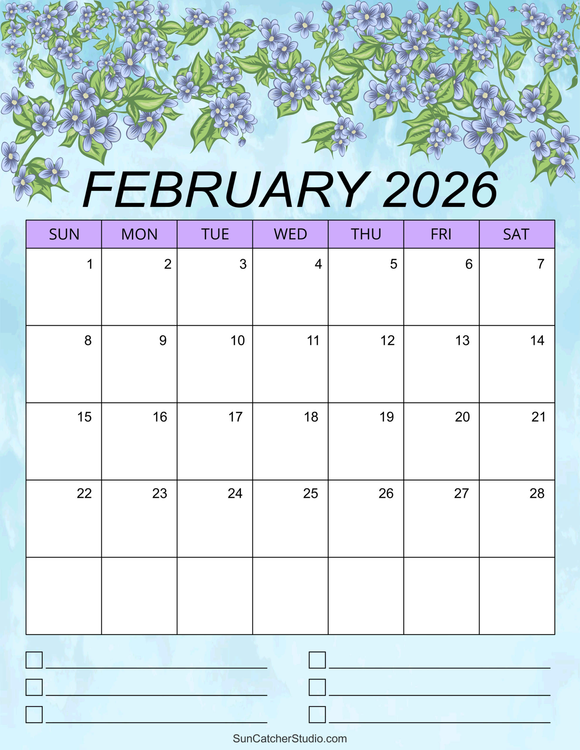 February Daily Calendar 2026