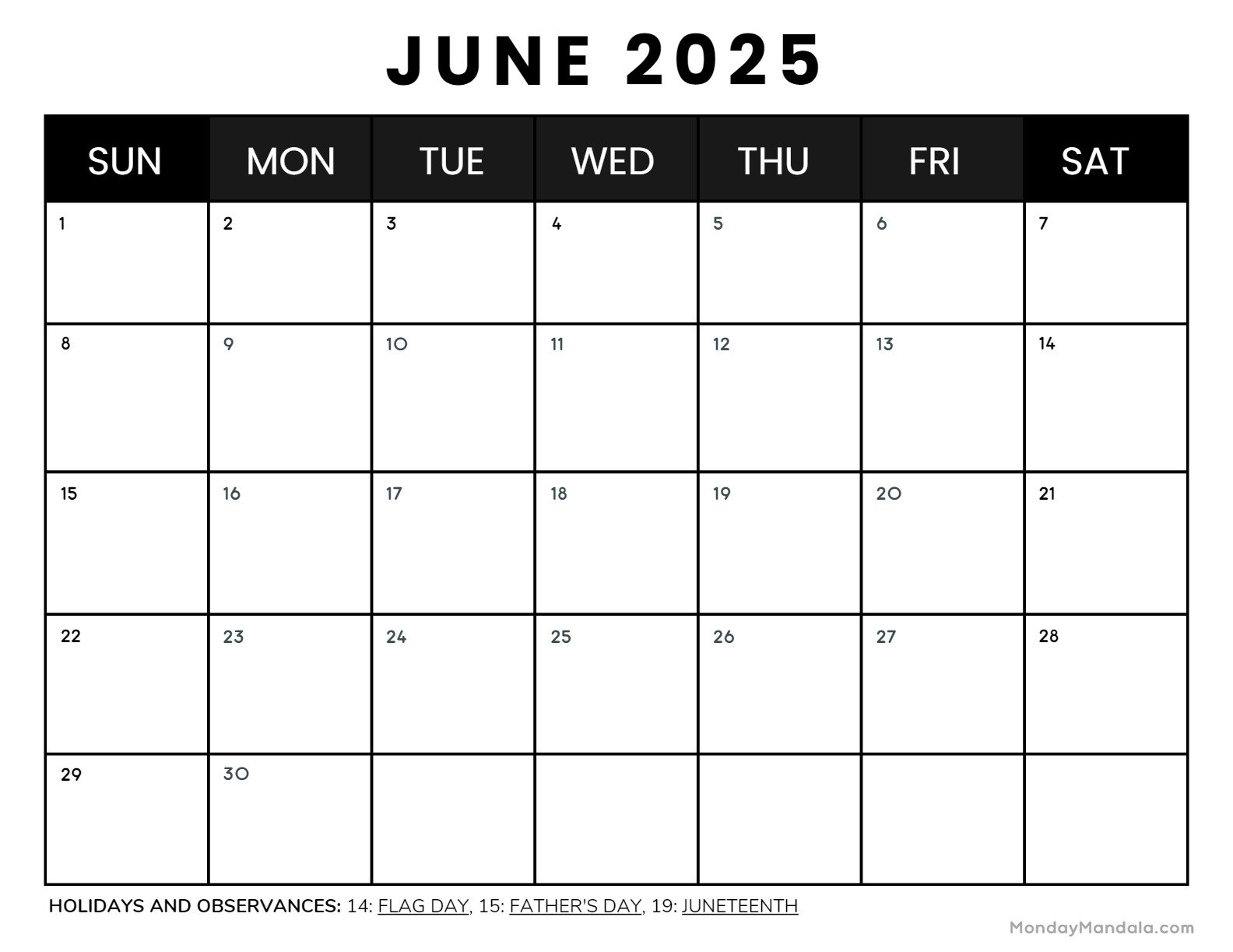 Free June 2025 Calendar Printable PDF Template With Holidays