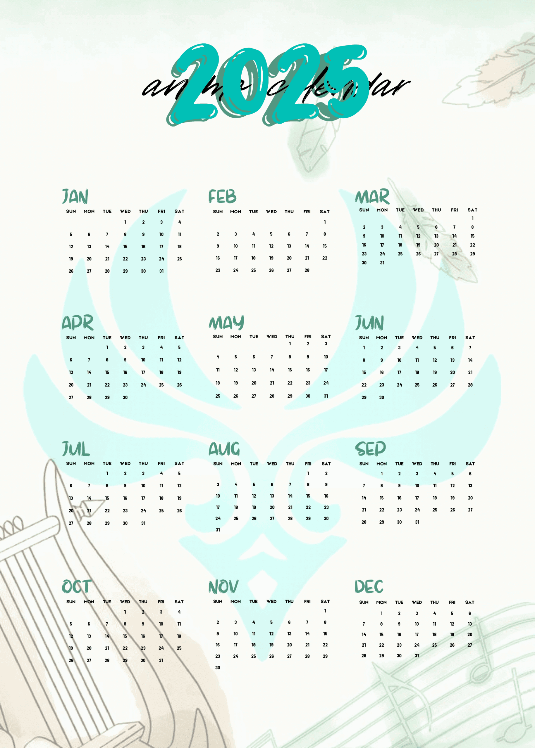 Calendar Genshin Impact Anemo Themed Calendar 2025 By