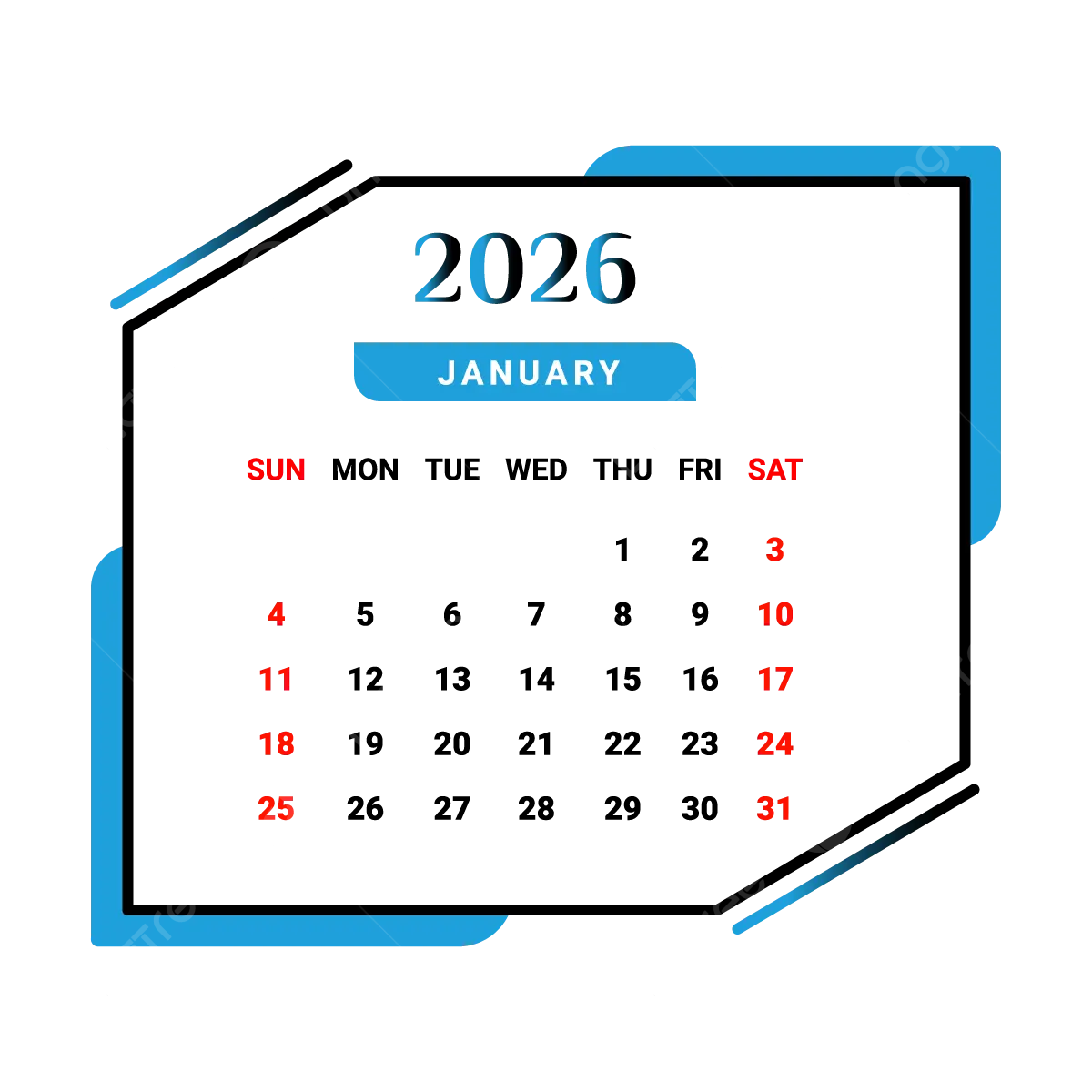 Start the new year off right by staying organized and focused with a January 2026 calendar that suits your needs. Whether you prefer a digital or printable option, having a calendar with no background can help you stay on top of your schedule and achieve your goals.