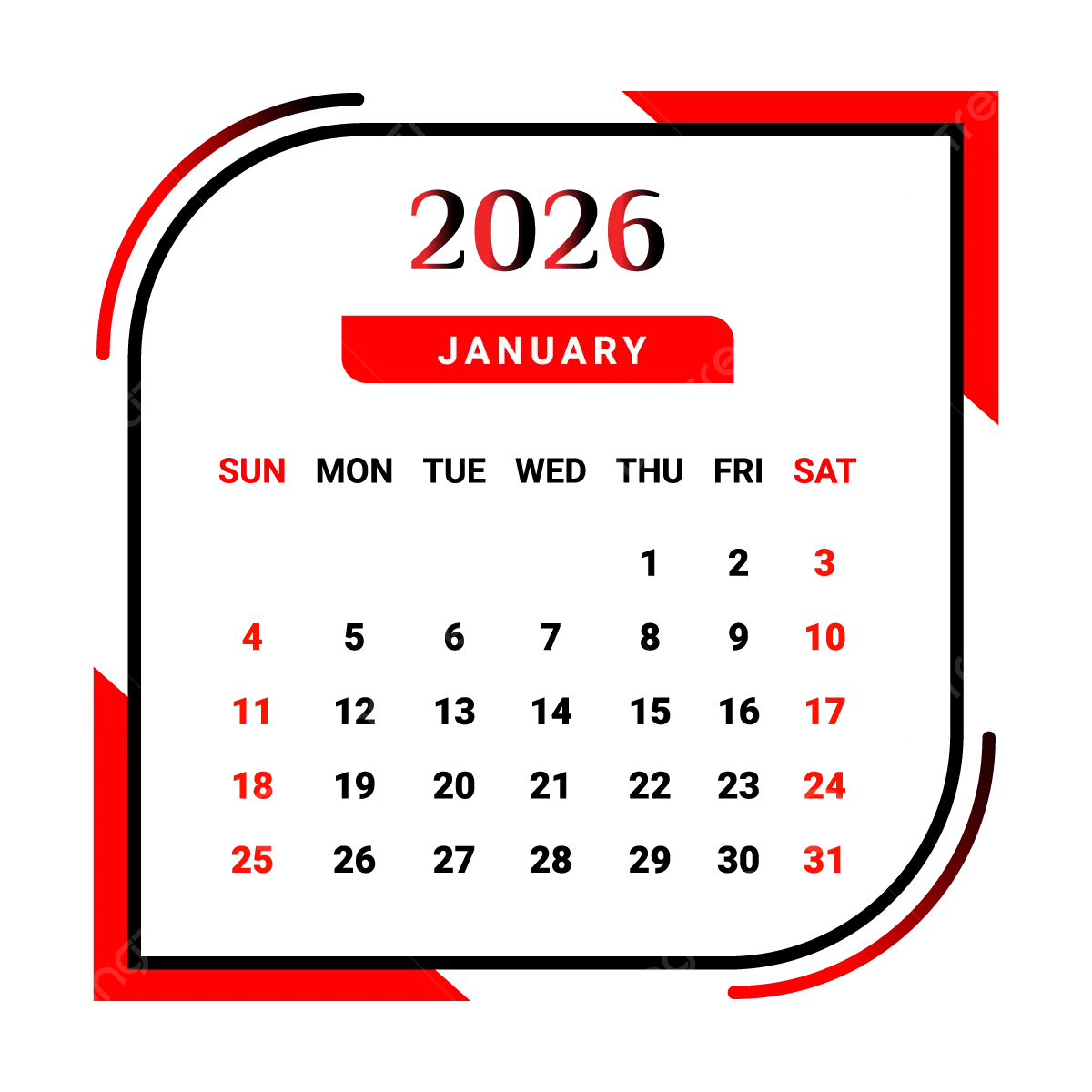 2026 January Monthly Calendar Vector 2026 January Monthly Calendar 2026 January Calendar PNG And Vector With Transparent Background For Free Download