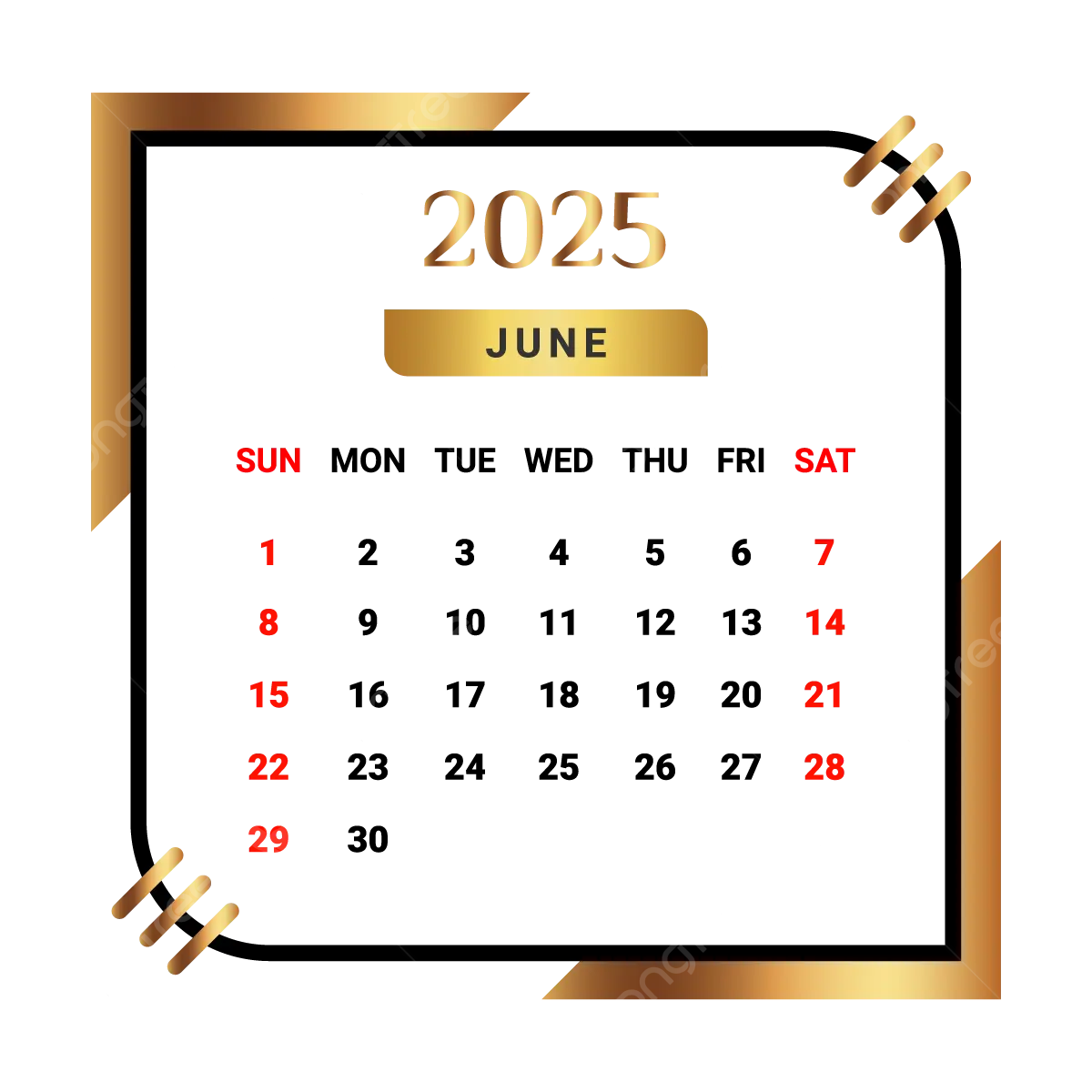 2025 June Month Calendar With Black And Golden Vector Monthly Calendar Calendar June 2025 PNG And Vector With Transparent Background For Free Download