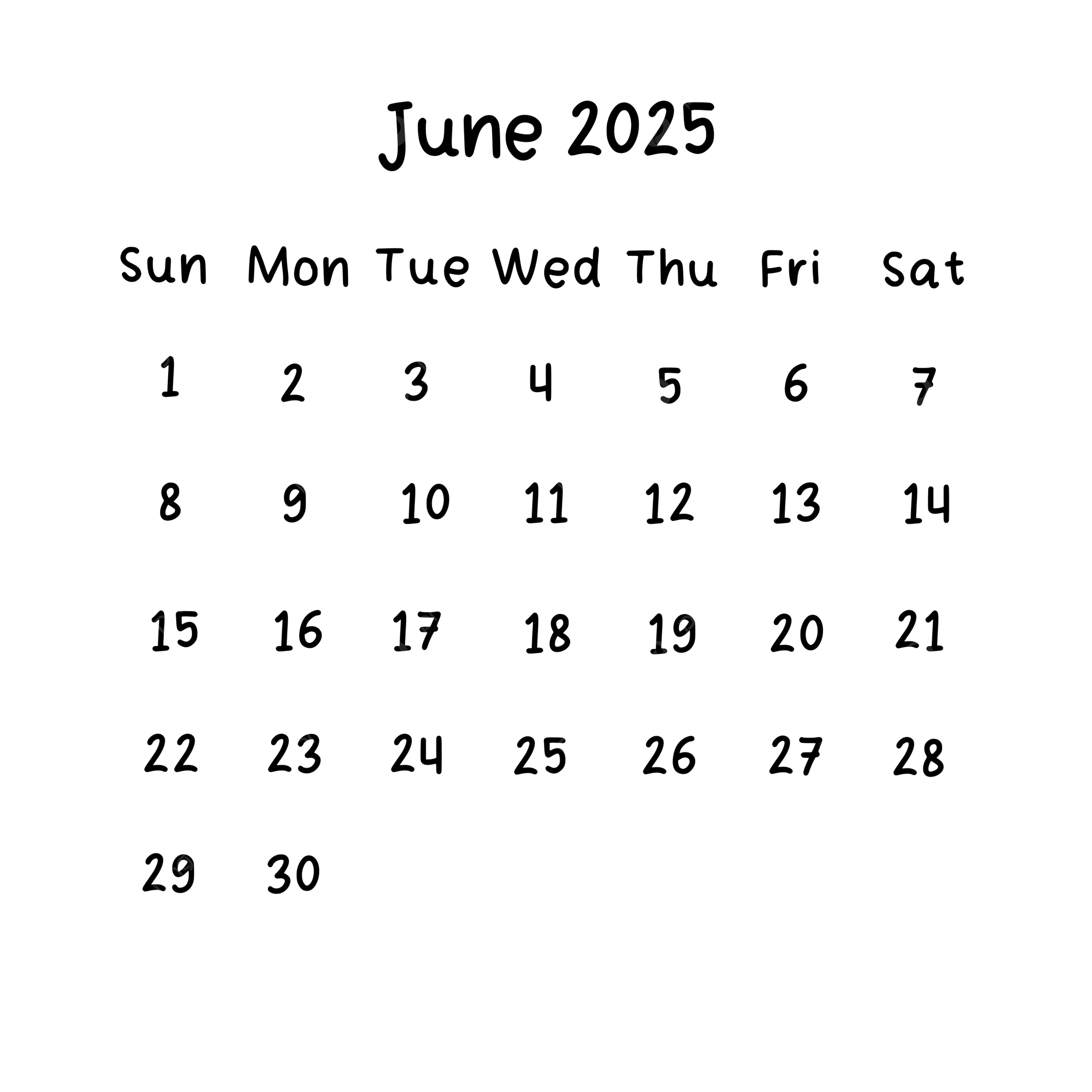 June 2025 Plain Calendar In Black Color 2025 June Calendar PNG Transparent Clipart Image And PSD File For Free Download