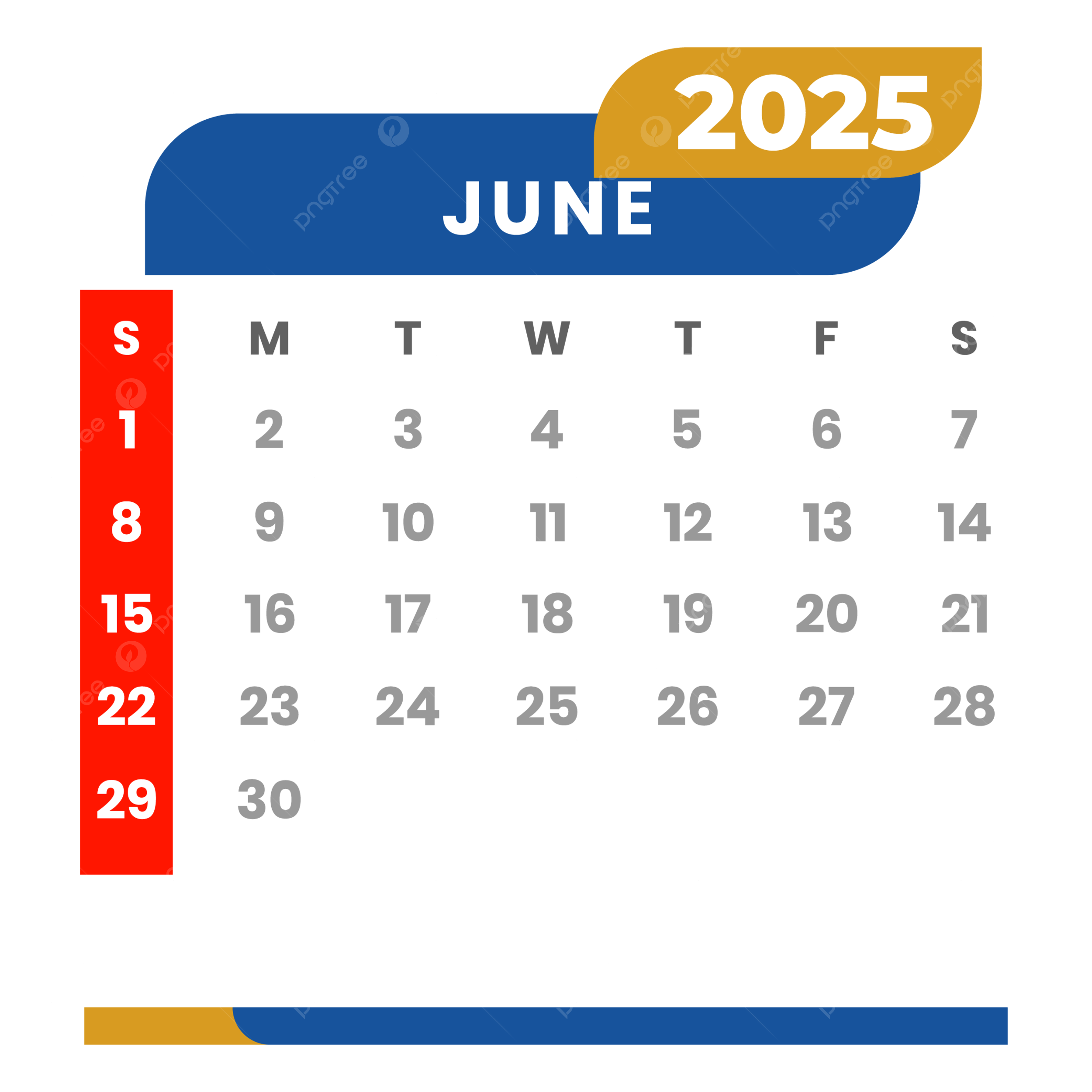 Monthly Calendar June 2025 Clipart Vector Monthly Calendar June 2025 Calendar 2025 PNG And Vector With Transparent Background For Free Download