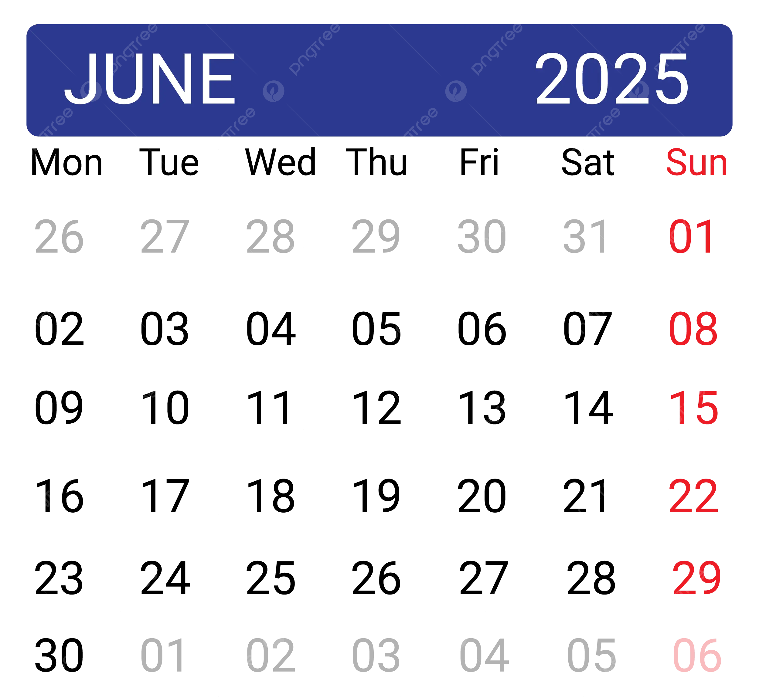 June 2025 Calendar PNG Transparent Images Free Download Vector Files Pngtree