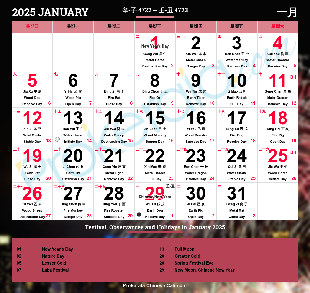 Chinese Calendar 2025 Festivals Holidays 2025
