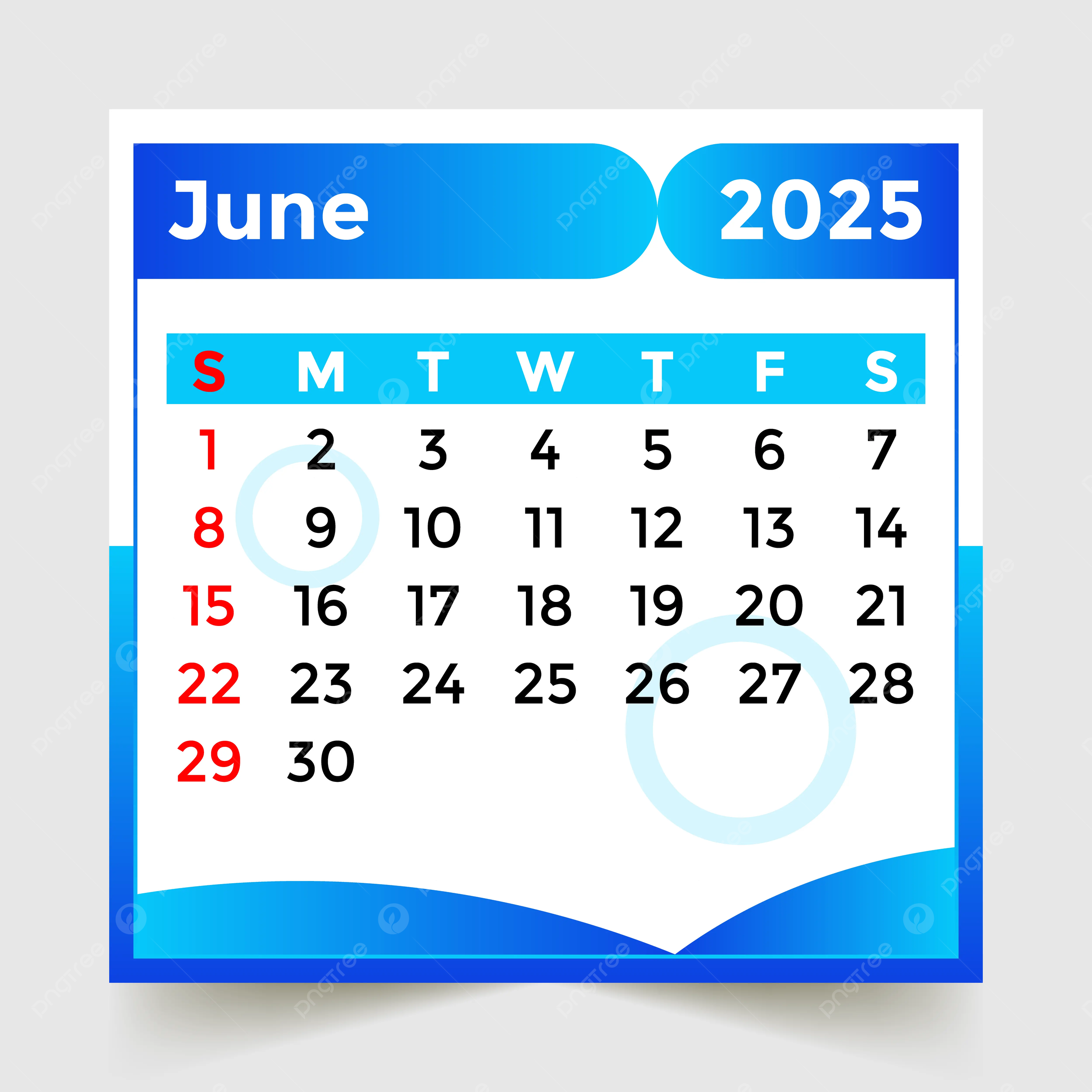 Calendar 2025 Month Of June Skyblue Vector Template Download On Pngtree