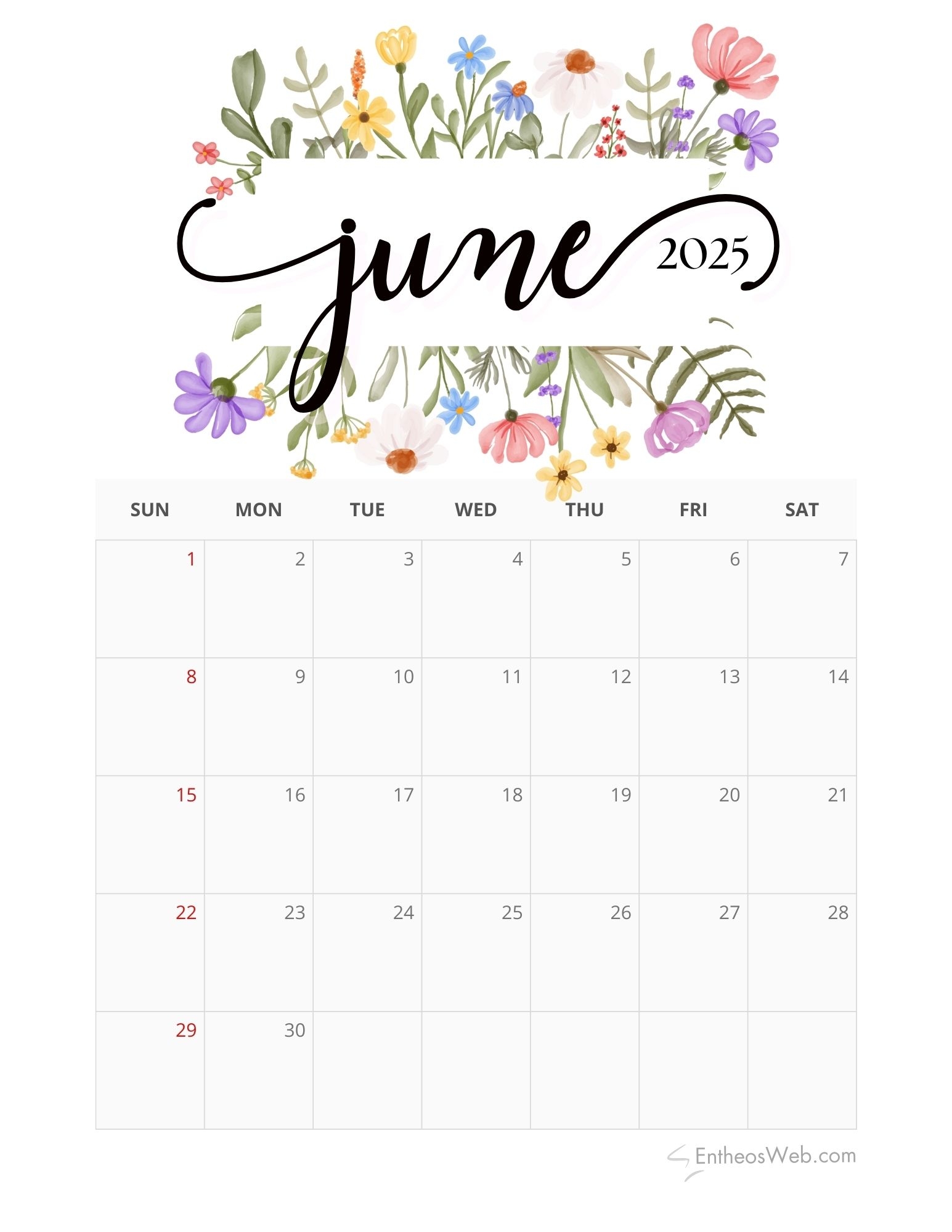 Our June calendar for 2025 is designed to be simple and functional. With plenty of space to jot down important dates and events, you can stay organized and on top of your commitments all month long. Plus, the best part is that it’s completely free to download and print!