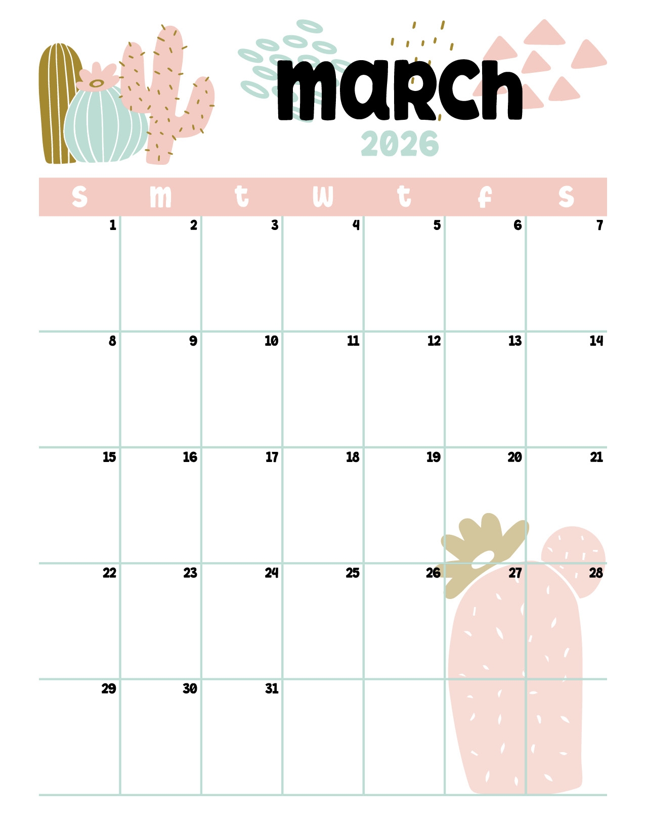March 2026 Calendars Free PDF Printables