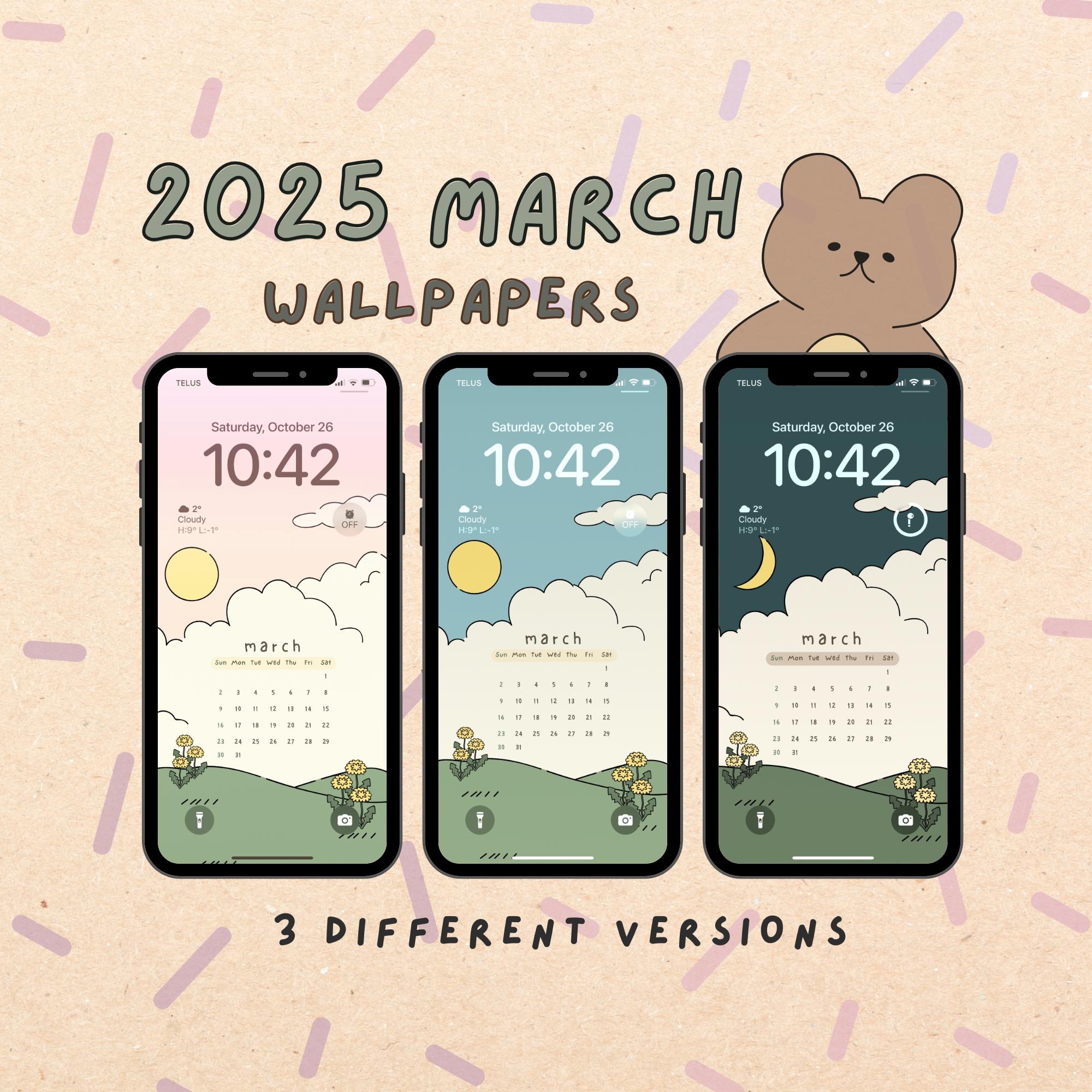 2025 March Calendar IPhone Wallpaper Cute IPhone Wallpaper Minimal Aesthetic Wallpaper March Spring Calendar DIGITAL DOWNLOAD 4PCS Etsy Hong Kong