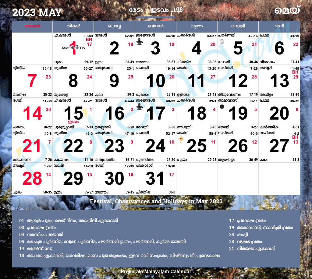 Malayalam Calendar 2023 May