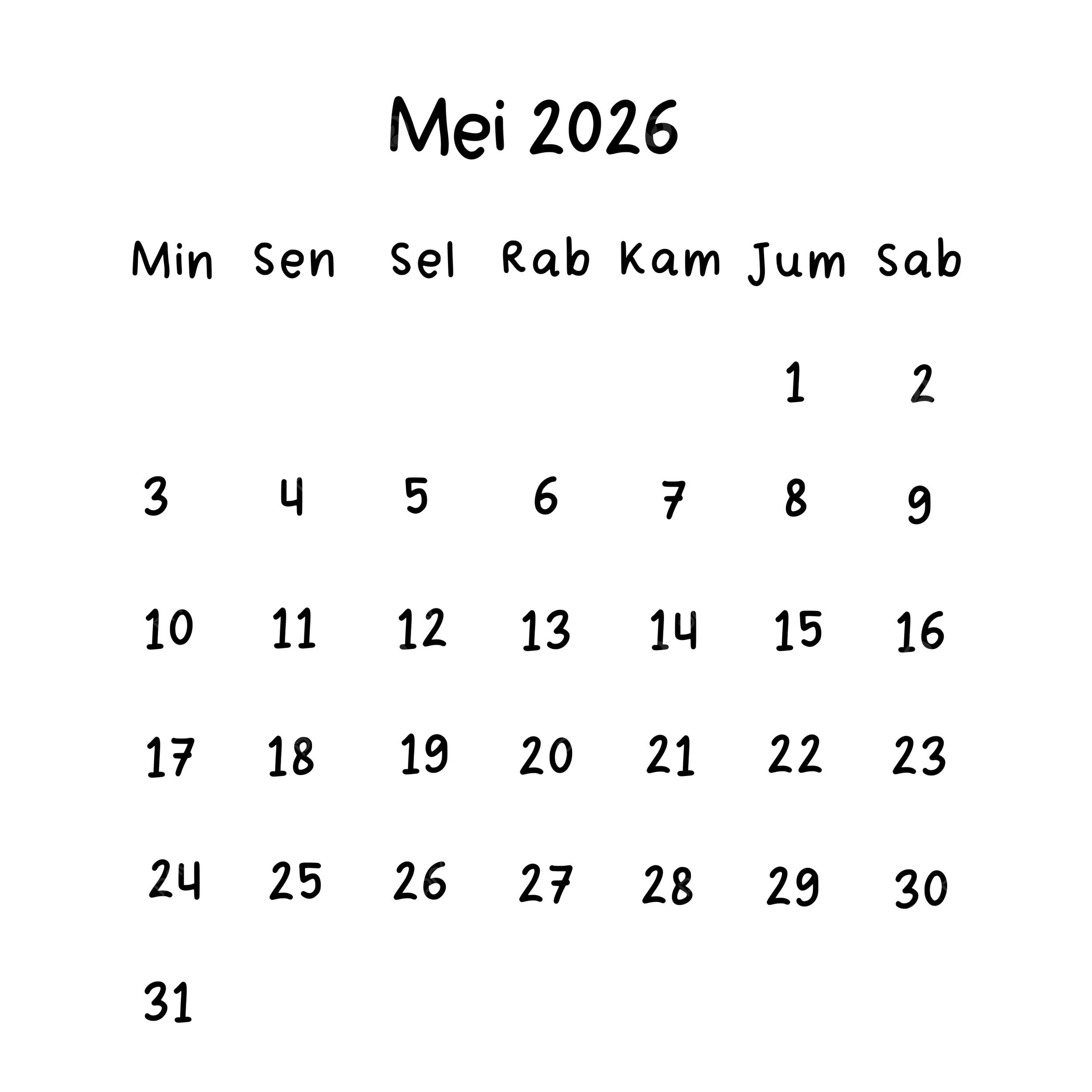 May 2026 Plain Calendar In Indonesian May 2026 Calendar PNG Transparent Clipart Image And PSD File For Free Download