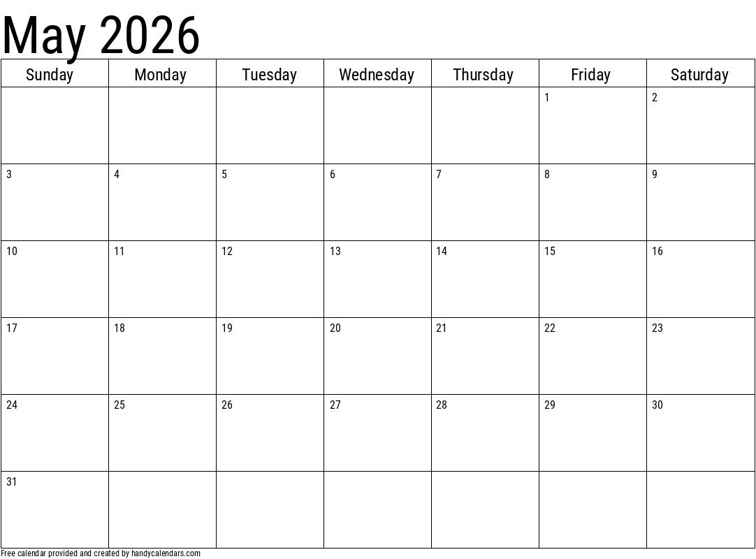 2026 May Calendars Handy Calendars