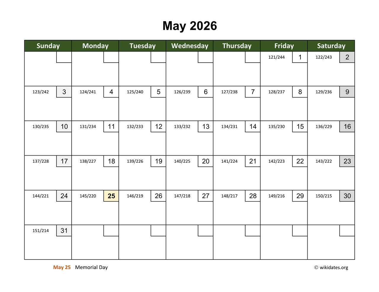 May 2026 Calendar With Day Numbers WikiDates