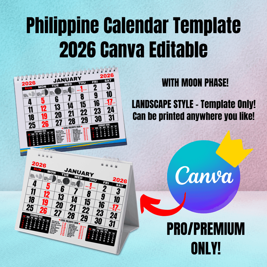 Philippine Calendar Template 2026 Canva Editable By Printwithcajas Raket PH