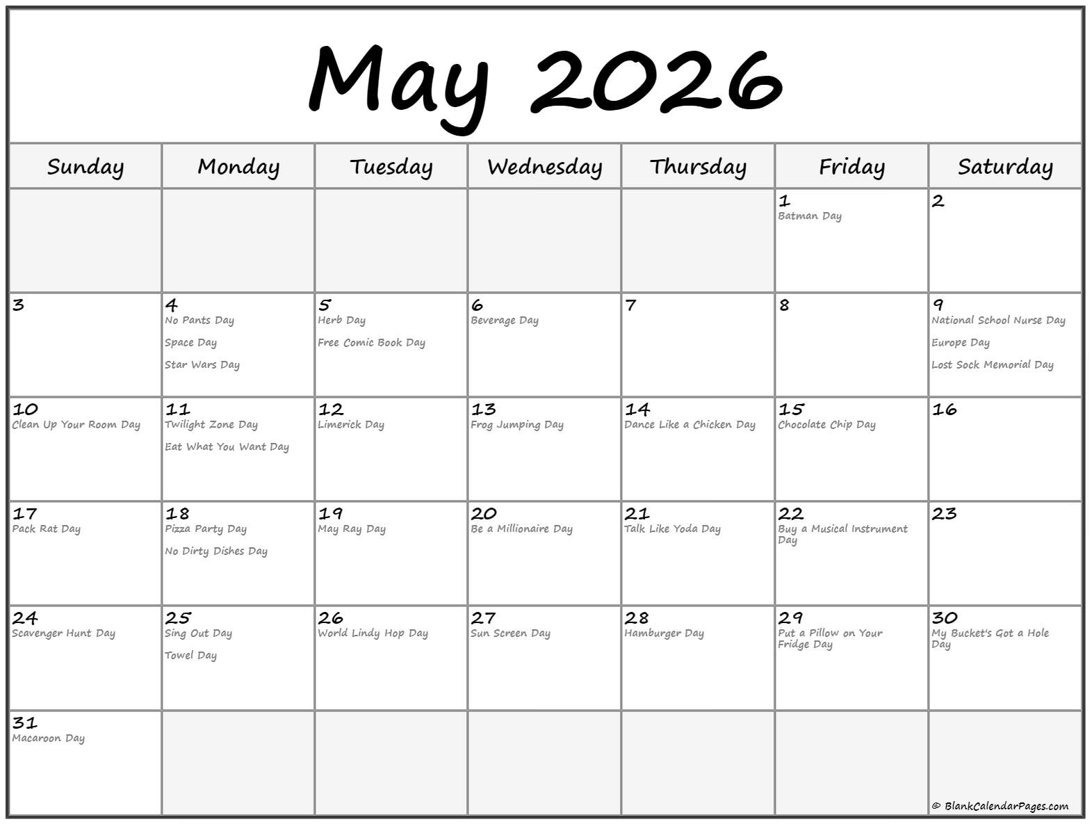 May Calendar 2026 Special Days