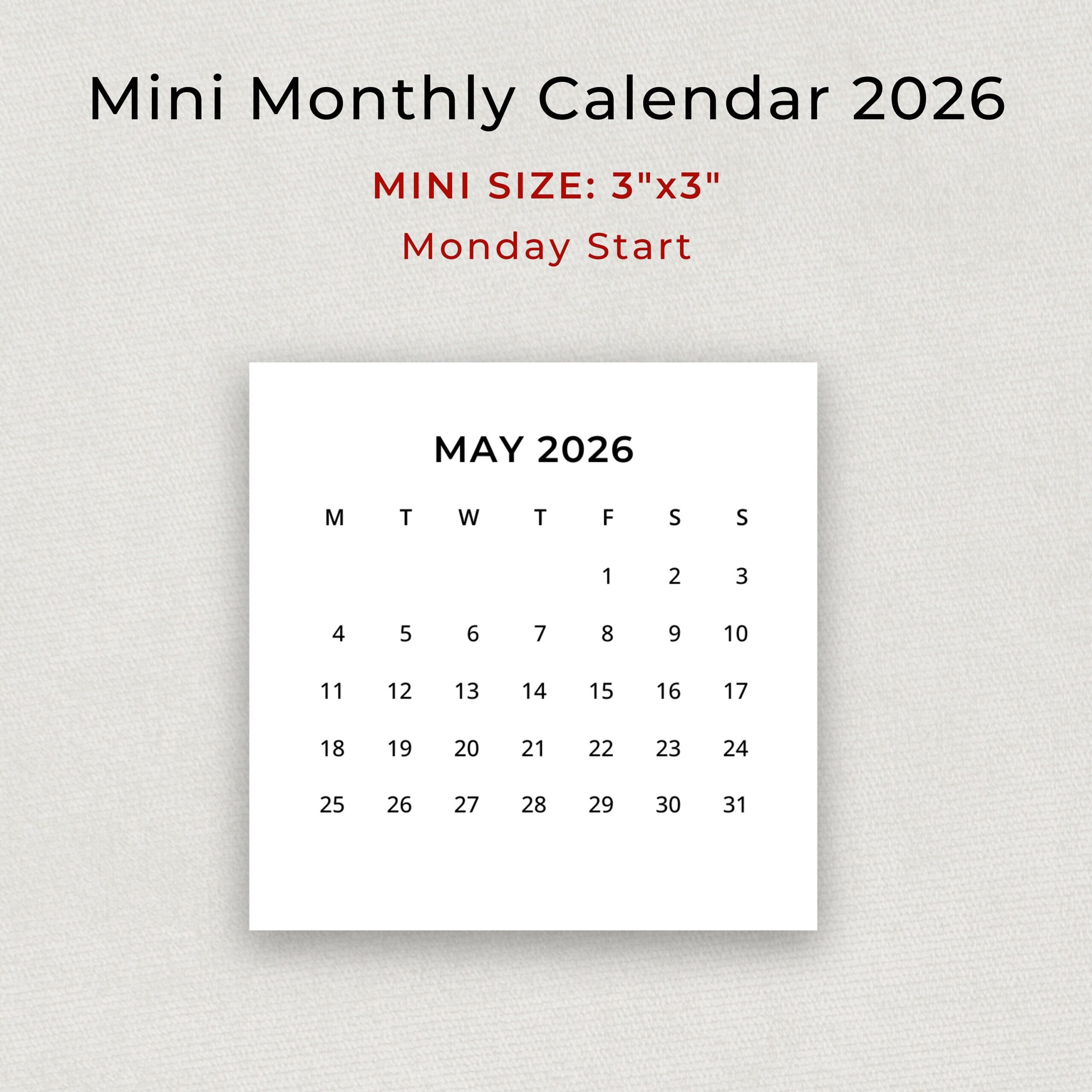 2026 Mini Calendar 2026 Small Calendar Printable 2026 Minimalist Calendar 3×3 Inch Square Calendar 2026 Pocket Calendar Desk Calendar DIY Etsy UK