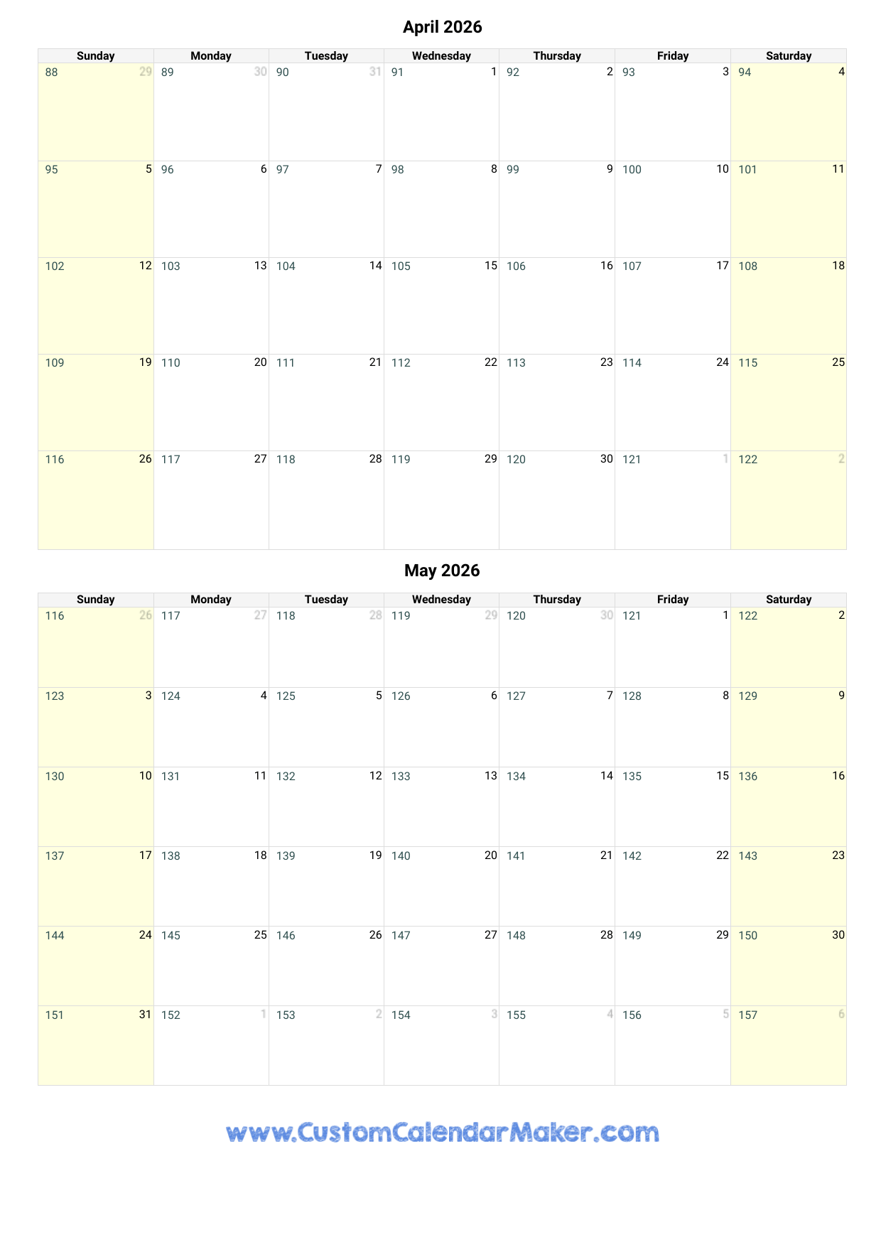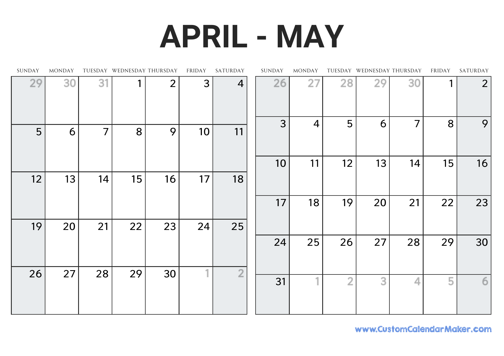 April And May 2026 Calendar Custom Calendar Maker