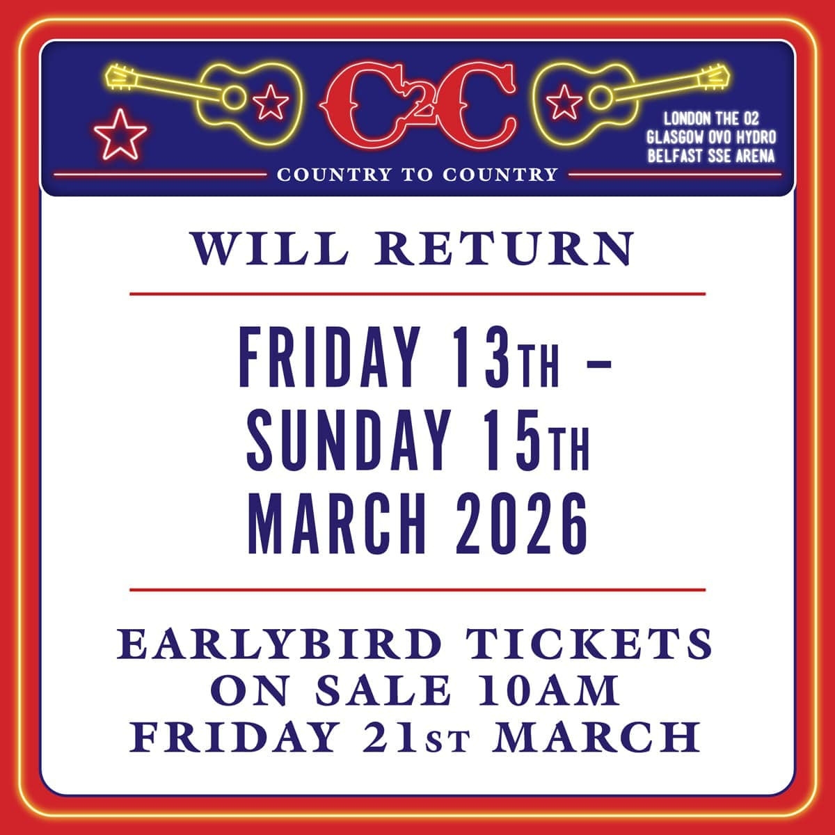NEWS C2C COUNTRY TO COUNTRY FESTIVAL WILL RETURN 13th 15th MARCH 2026