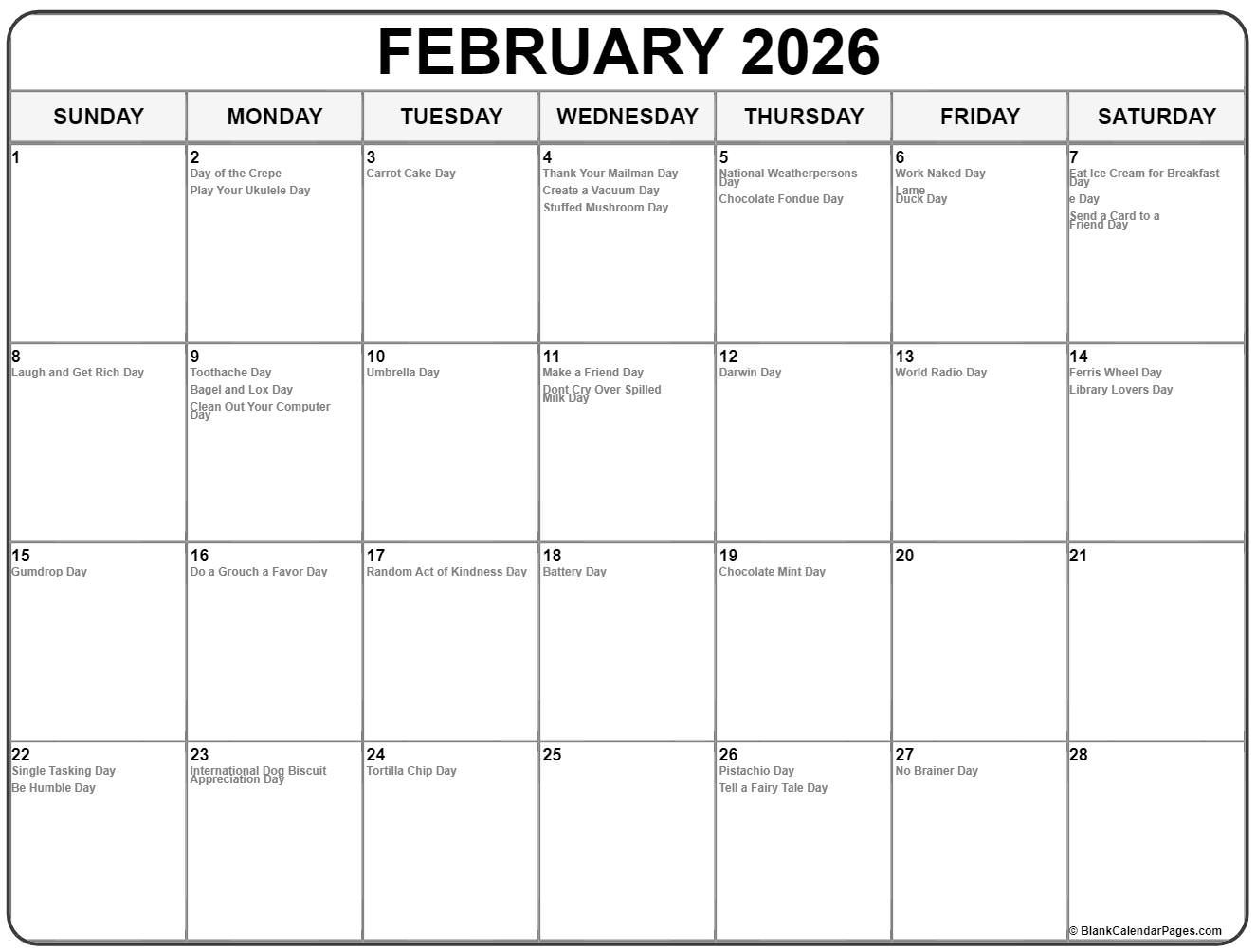 National Day Calendar For February 2026