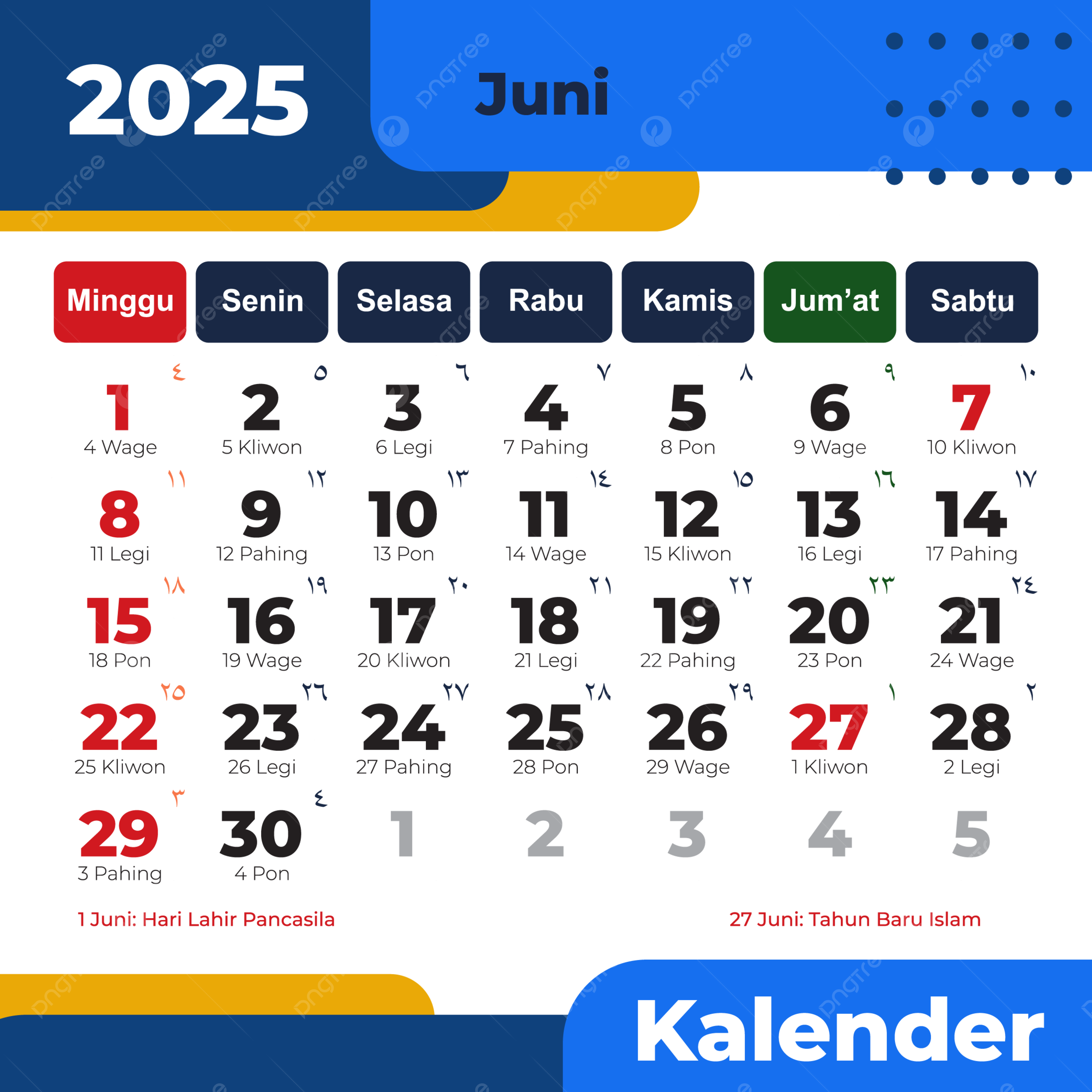 Complete Indonesian Monthly Calendar 2025 June Vector June Calendar 2025 Calendar June PNG And Vector With Transparent Background For Free Download