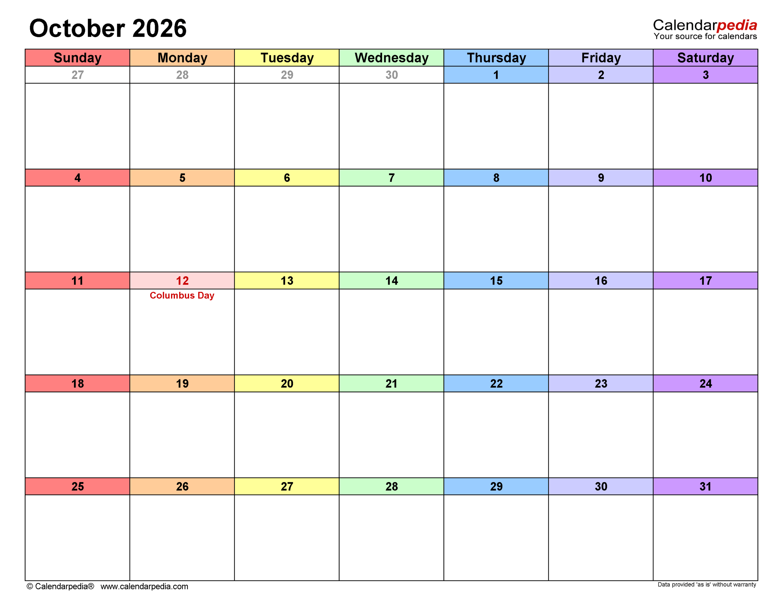 October 2026 Calendar Templates For PDF Excel And Word
